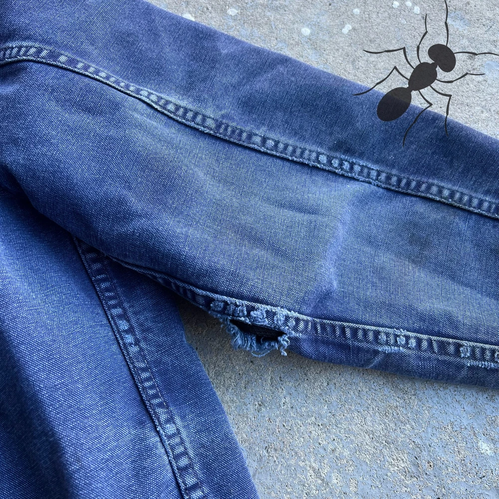 Vintage 1989 Carhartt blue Santa Fe distressed work wear jacket. Amazing wear!! The sleeves have holes and distressing see the pics please!! Beautiful jacket. Active lined. All around beaut of a jacket. 100 year Carhartt. Measures 24x26.5. I’d call this a medium personally, maybe was tagged large originally. Please check measurements before purchasing. I do my best to show any flaws in pictures. Quick shipping! Bundles encouraged! @ants_haul on Instagram.