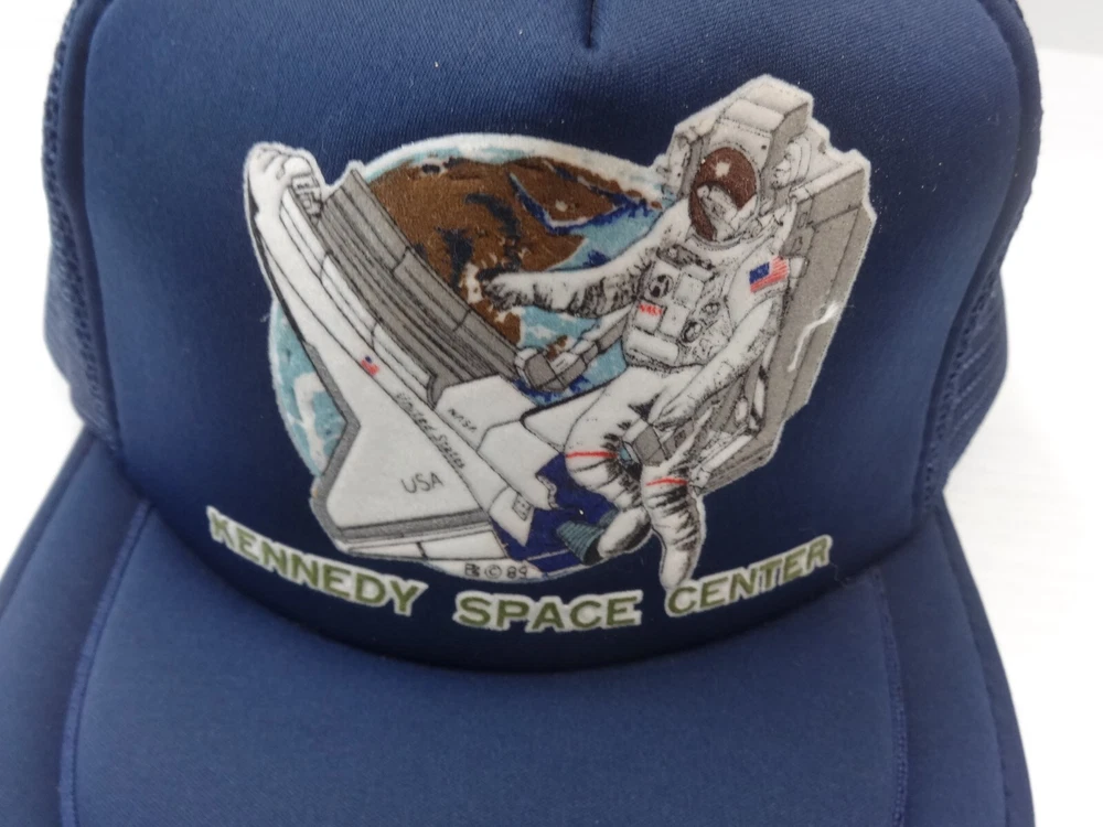 Vintage 1989 Kennedy Space Center Snapback Trucker Hat Men OSFA Taiwan Made Good Used condition with No Flaws Bin 188H 1/28/25