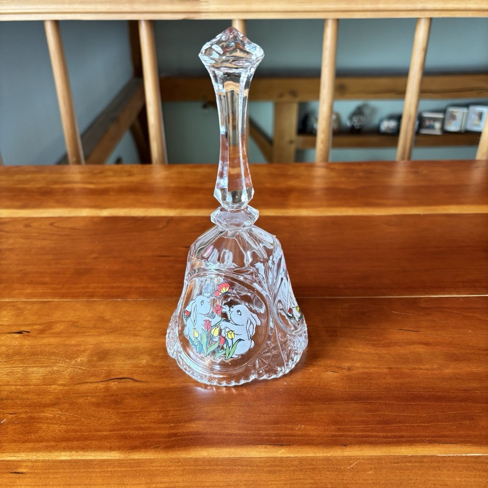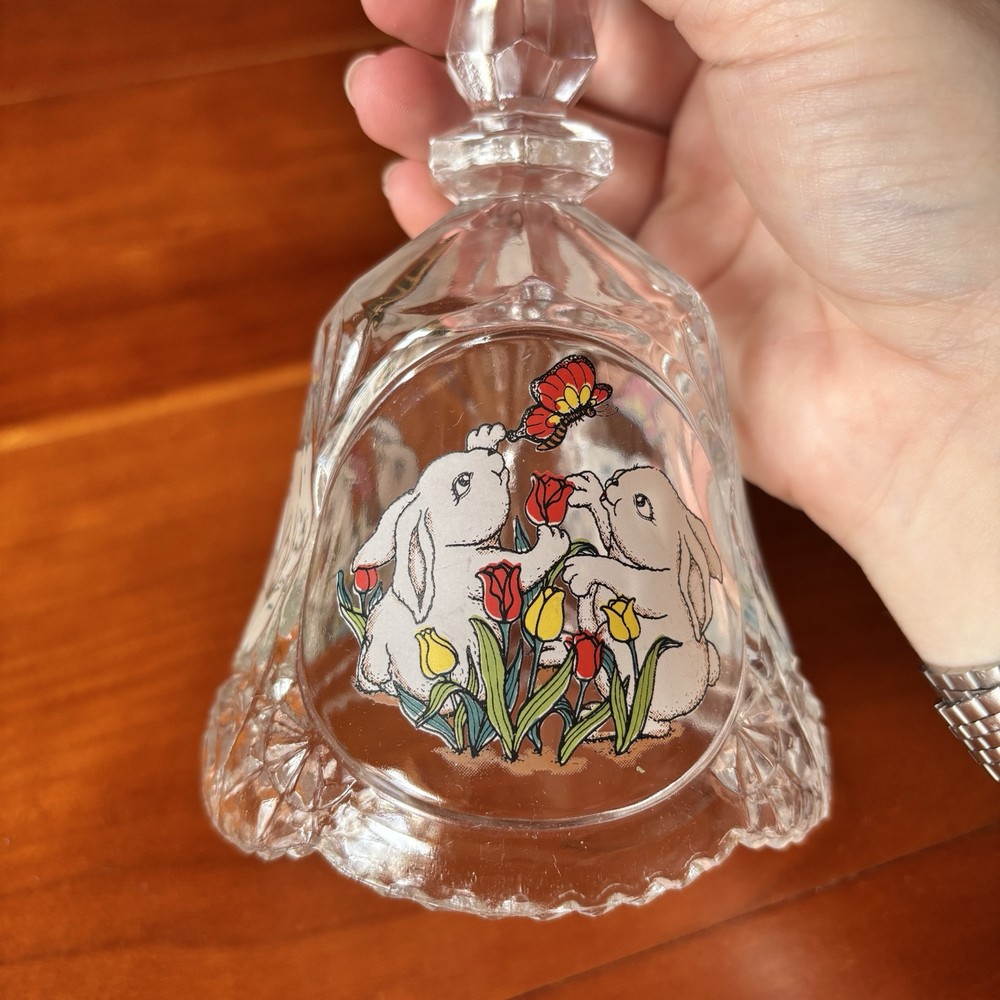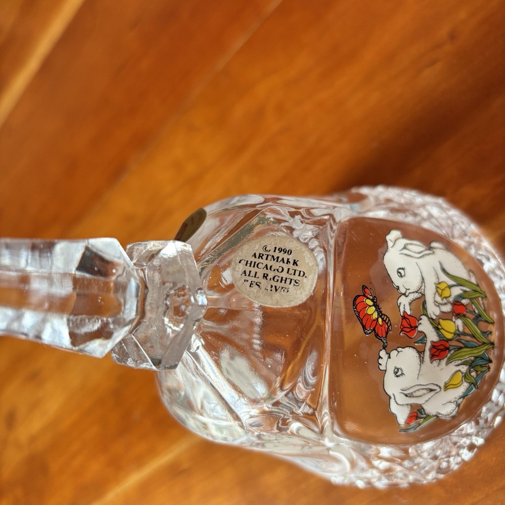 1990 Artmark 24% genuine lead crystal bunny bell (no bell - purely decorative) Featuring bunnies, flowers, and butterflies. Charming vintage piece!