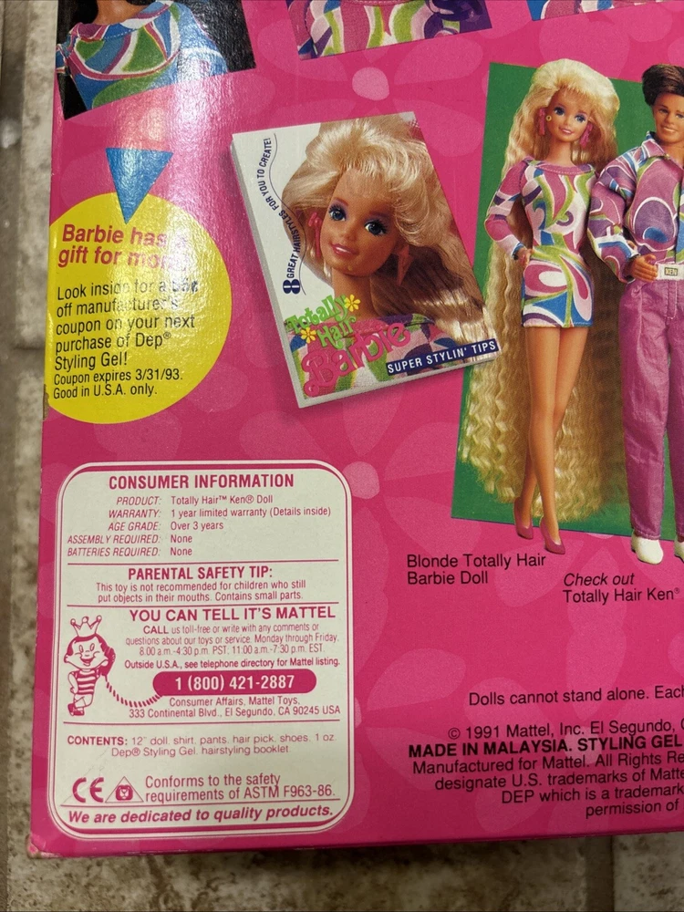 Vintage 1990 Totally Hair Ken, Mattel 1115 Never Opened.