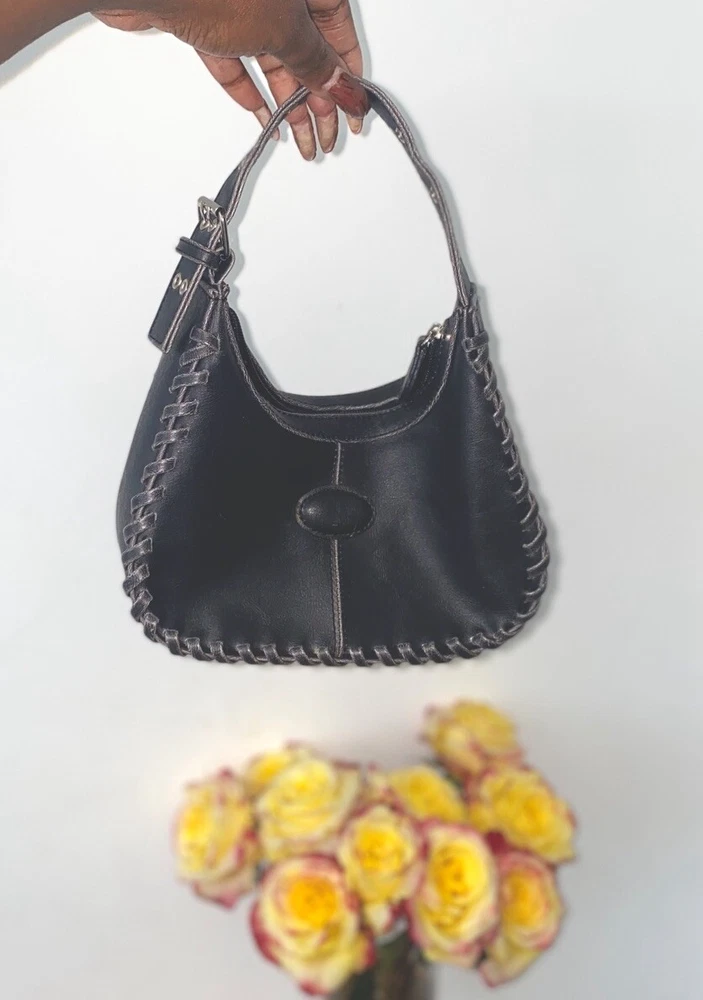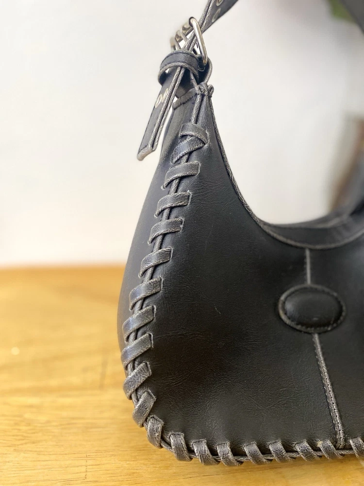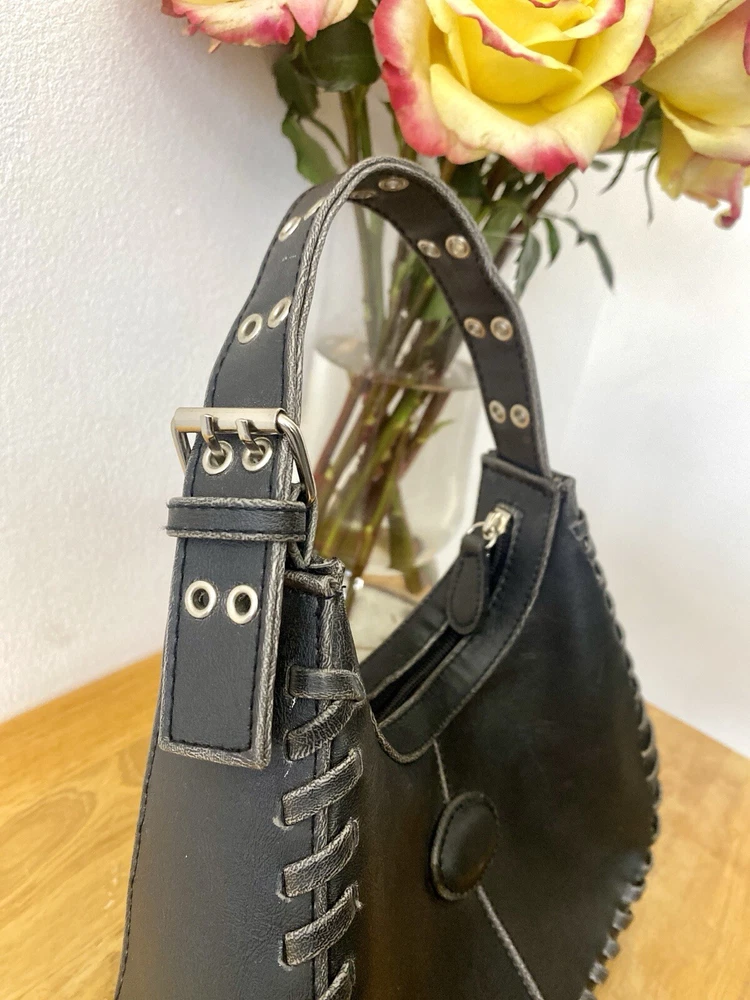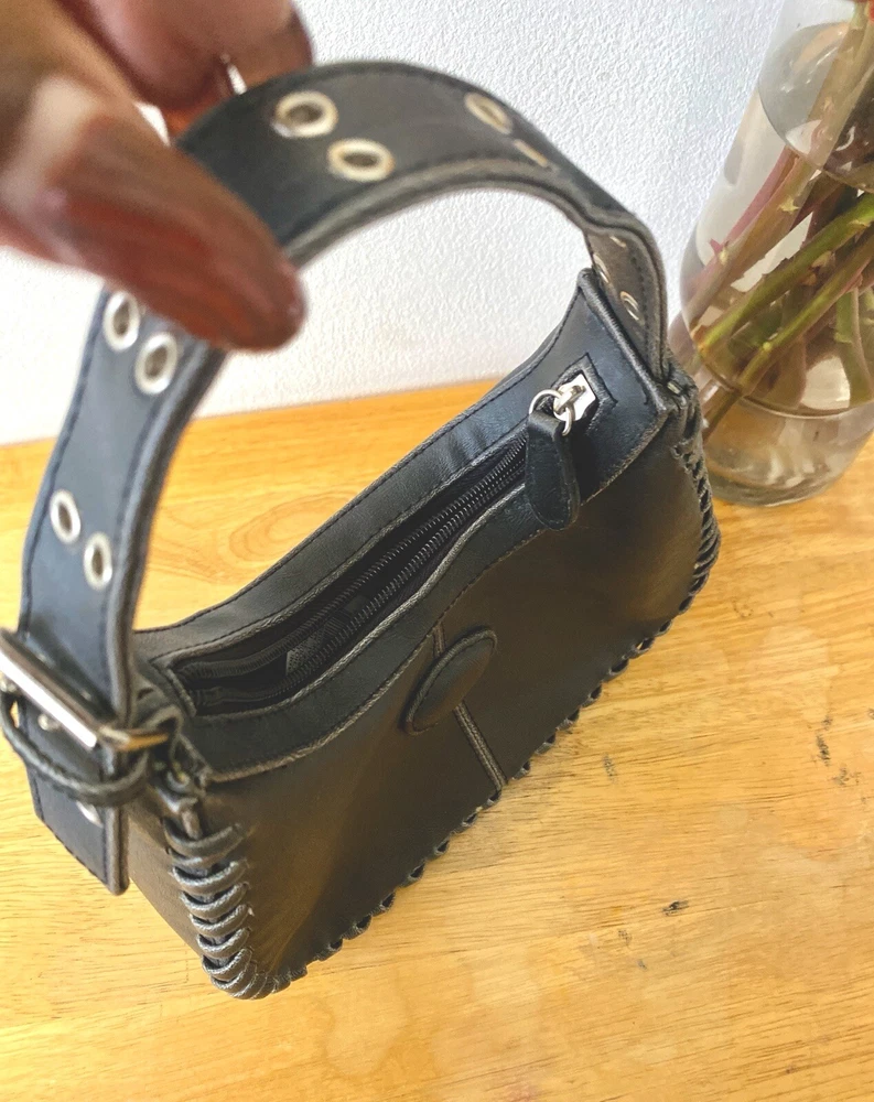 Vintage 1990s Black Mini Handbag | Silver Hardware | Y2K Retro Style