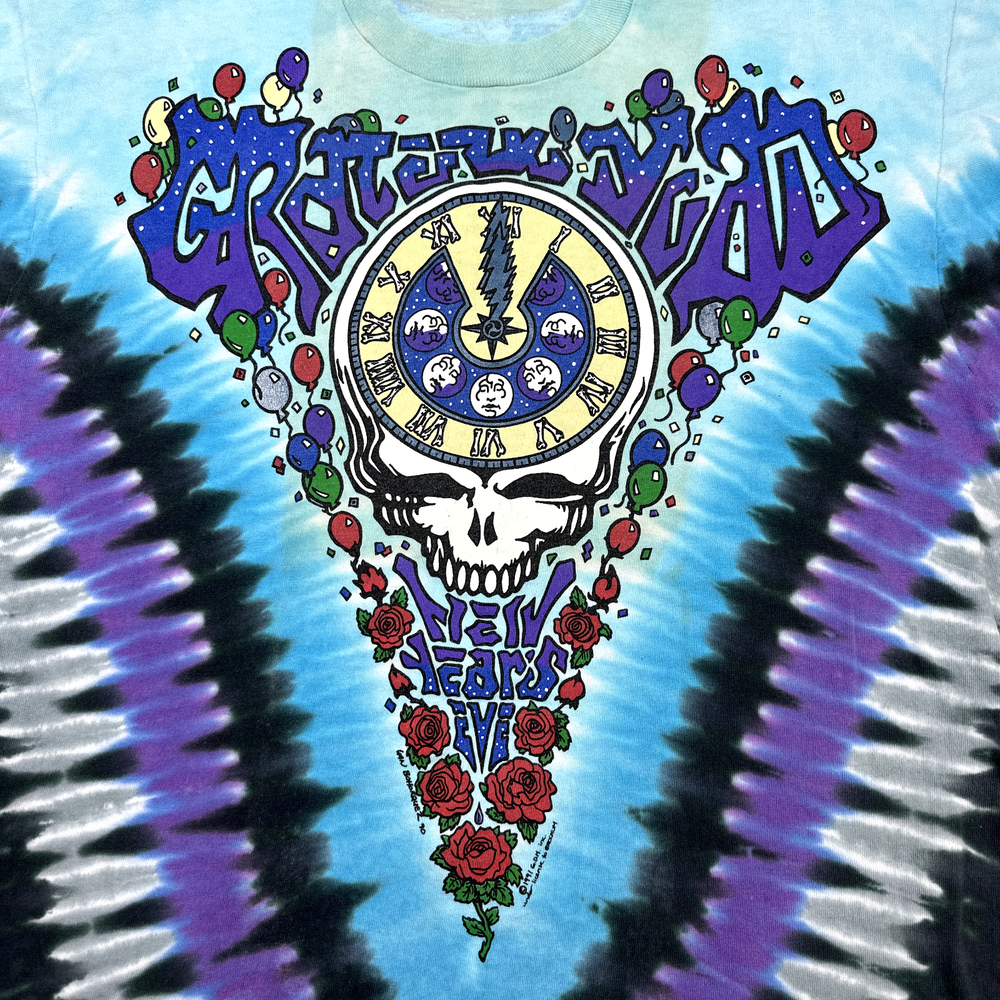 Vintage Grateful Dead Shirt New Years Eve 1991 In The Midnight Hour Single Stitch Capricornus Tie Dye. Original vintage 90s concert tees. Stain around the neck as shown. Pockets No Condition: Well cared for - Nice condition - No Neck size Tag and stain around neck area. Approximate Measurements in final photos. Stretch "Flex" in fabric (other than elastic elements): No Buy More & Save! Combined shipping for US customers - $1.99 each additional item (Add items to shopping cart and discounts will automatically calculate during checkout) * ALL PREOWNED CLOTHING HAS BEEN LAUNDERED PER EBAY'S POLICIES AND STANDARDS.*