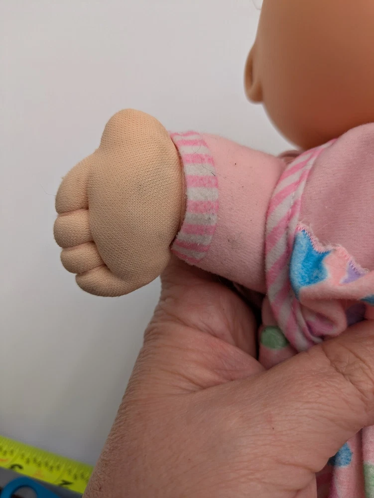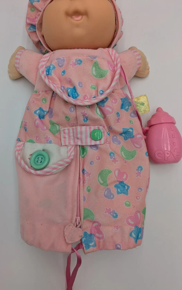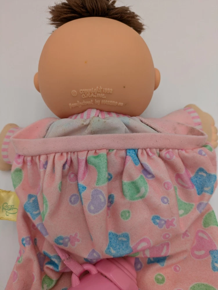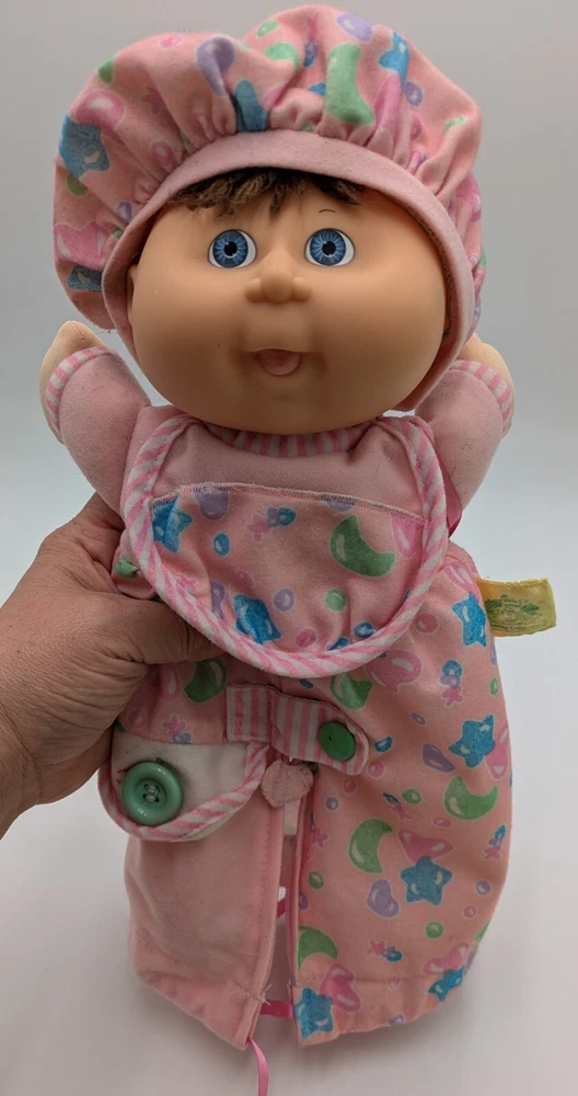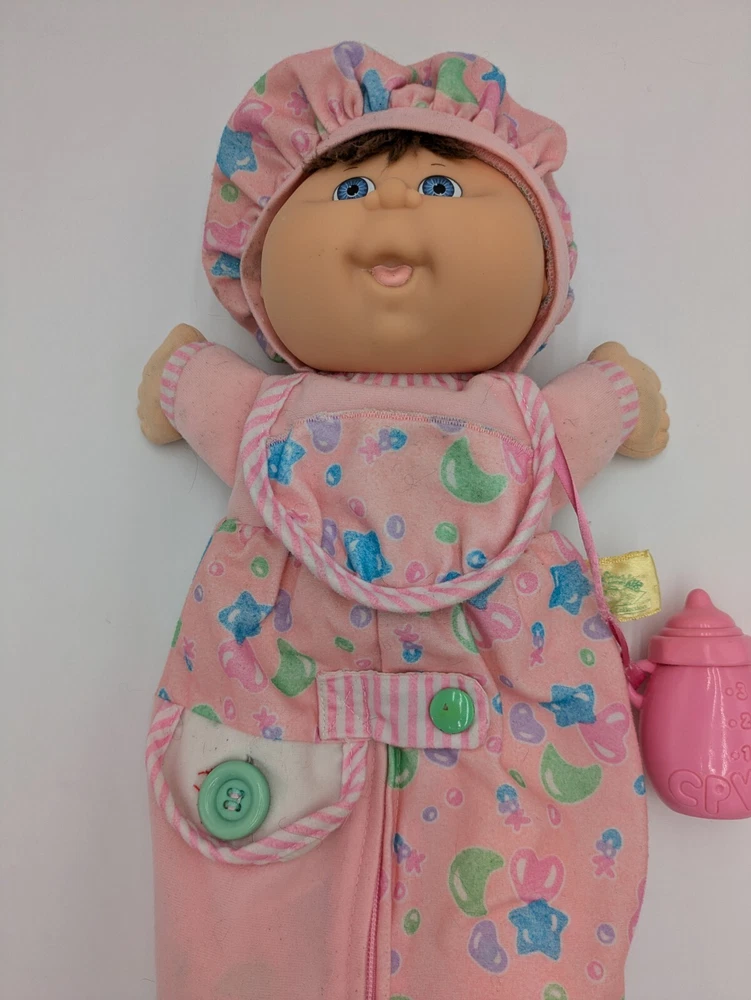 This vintage 1992 Cabbage Patch Toddler Collection Love N Care Baby Doll is a must-have for any collector or enthusiast. The doll is 12 inches in size and comes with straight brown hair and blue eyes. The doll is made of plastic and has a medium complexion. This original Hasbro doll is licensed and comes with a bottle. It was manufactured in the 1990s and is a great addition to any vintage doll collection. Perfect for display or play, this doll is sure to bring joy to any recipient.
