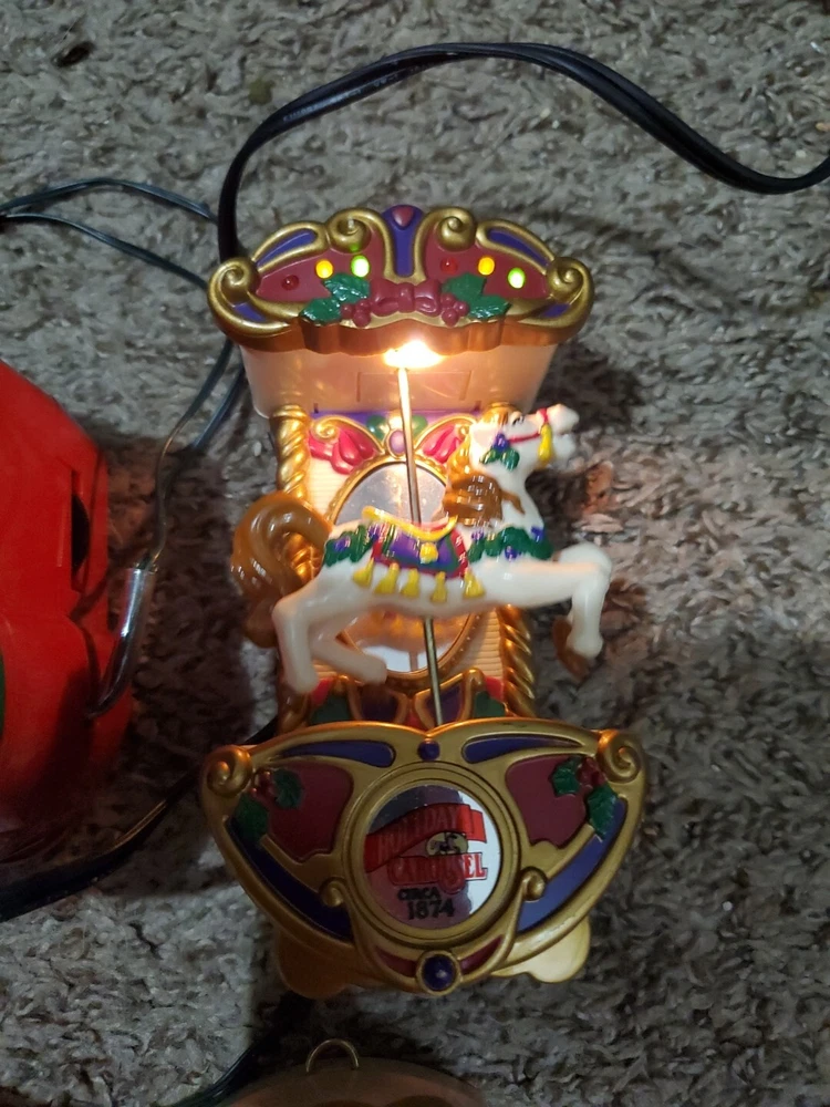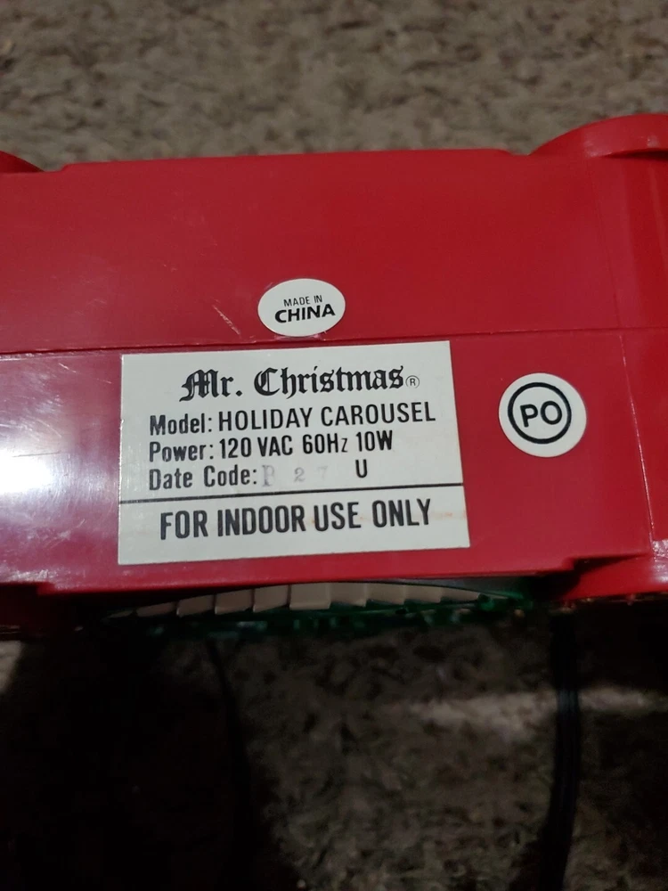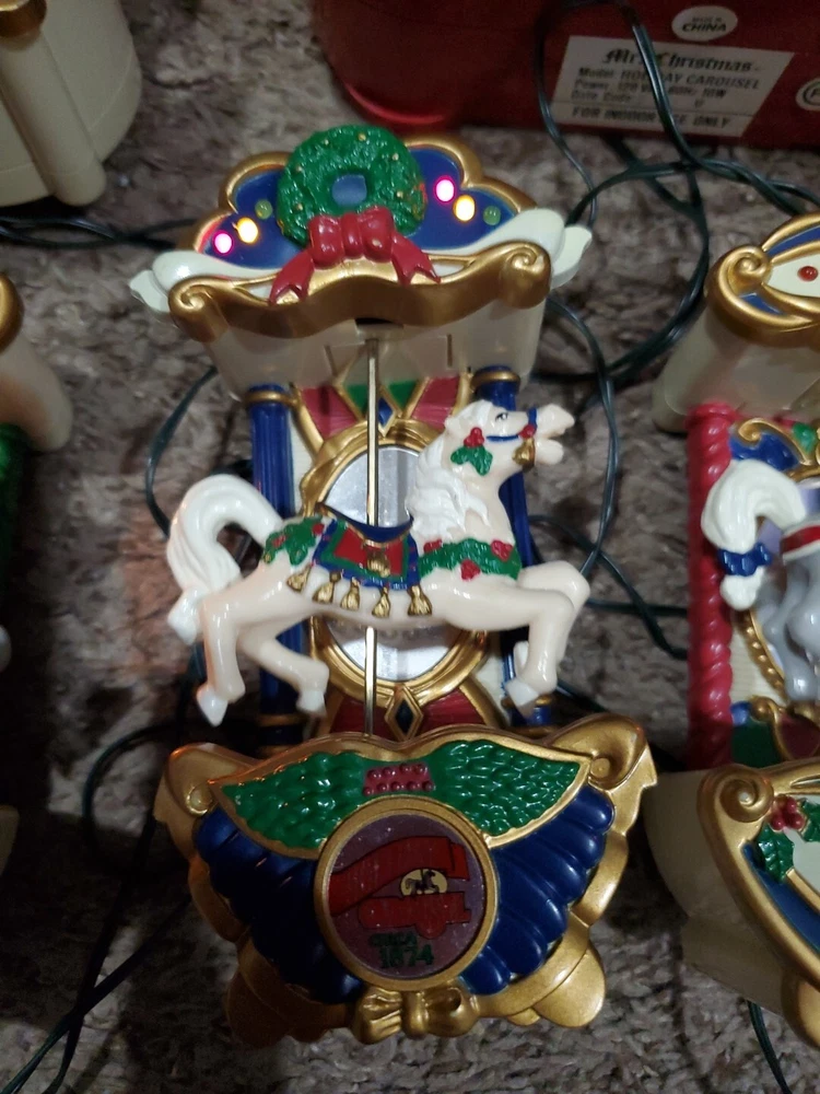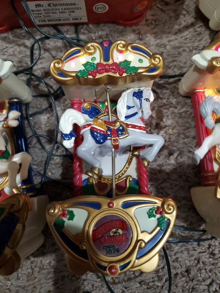 Color: Multicolor Power Requirements: Standard USA Household Current Brand: Mr Christmas Time Period Manufactured: Current (1991-Now) Year: 1992 Musical: Plays 21 Christmas Carols Occasion: Christmas UPC: 051053004002 Year Manufactured: 1992 gtin13: 051053004002 Characters: 6 Horses, Circus Wagon Original Box: no Featured Refinements: Mr Christmas Carousel Country/Region of Manufacture: China Material: Plastic