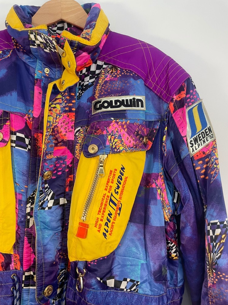 The Vintage 1992 Sweden Alpine Goldwin Olympic Jacket is a stylish and unique piece of men's clothing. This ski jacket, featuring a full zip and multicolor design, is perfect for winter travel and casual occasions. Made by Goldwin in Sweden, this jacket pays homage to the Olympic spirit with its vintage appeal. The size 52 jacket is machine washable and sure to keep you warm and stylish while hitting the slopes or exploring the great outdoors.