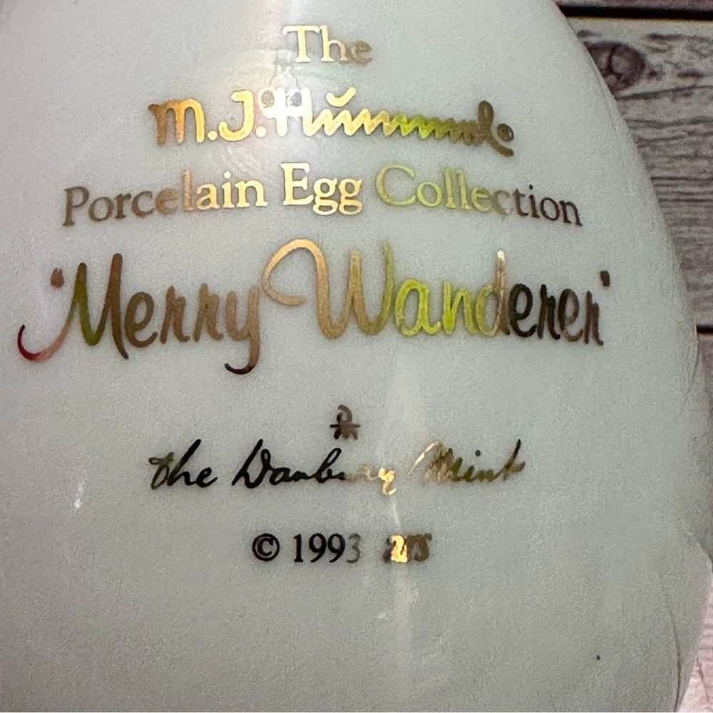 M J Hummel collectibles eggs Set of two decorative egg figurines with pastoral scenes. Features pastel green and cream colors with gold accents.vintage 1993 Great Condition free smoke