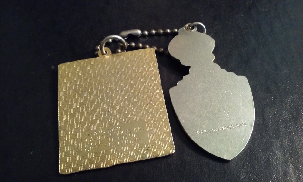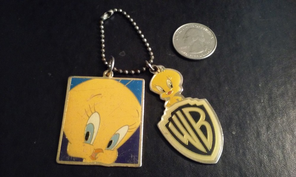 Vintage 2 Tweety Bird 1993 Warner Brothers Yellow Enamel Metal Keychain Fobs.