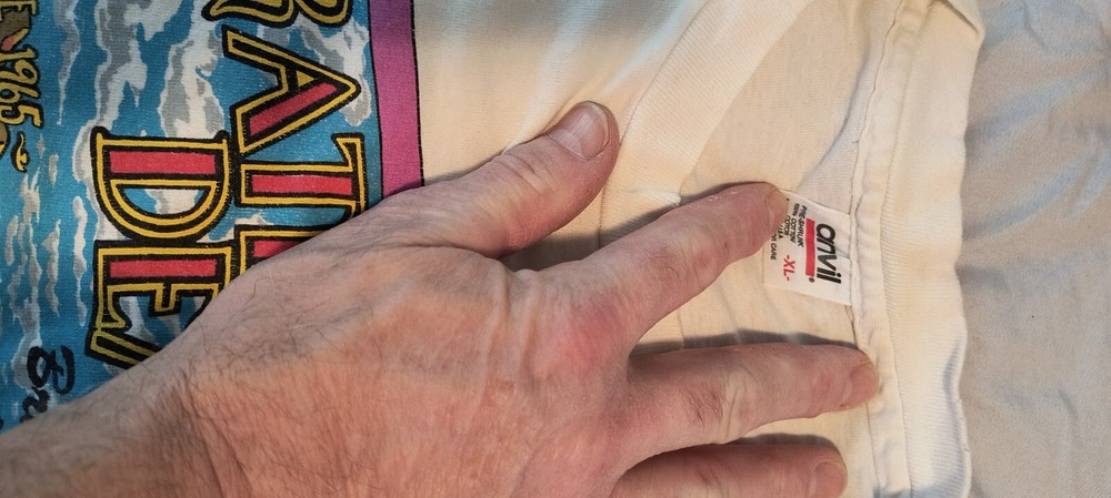 This vintage Grateful Dead shirt is a rare find from their Summer Tour in 1994. Made in the United States by Anvil, this XL size shirt is perfect for any fan of the legendary rock band. The shirt features the tour logo and is in great shape for its age. It's a must-have for any collector of music memorabilia and a great addition to any wardrobe. Don't miss out on this opportunity to own a piece of Grateful Dead history.