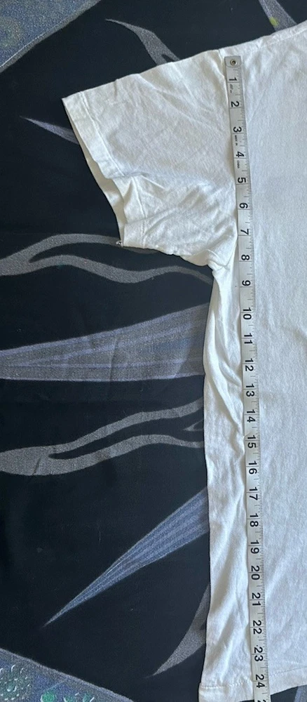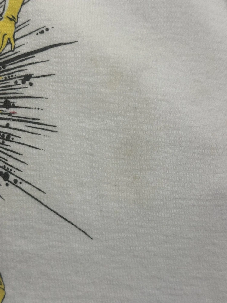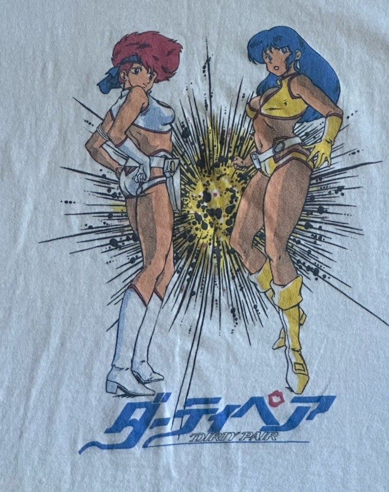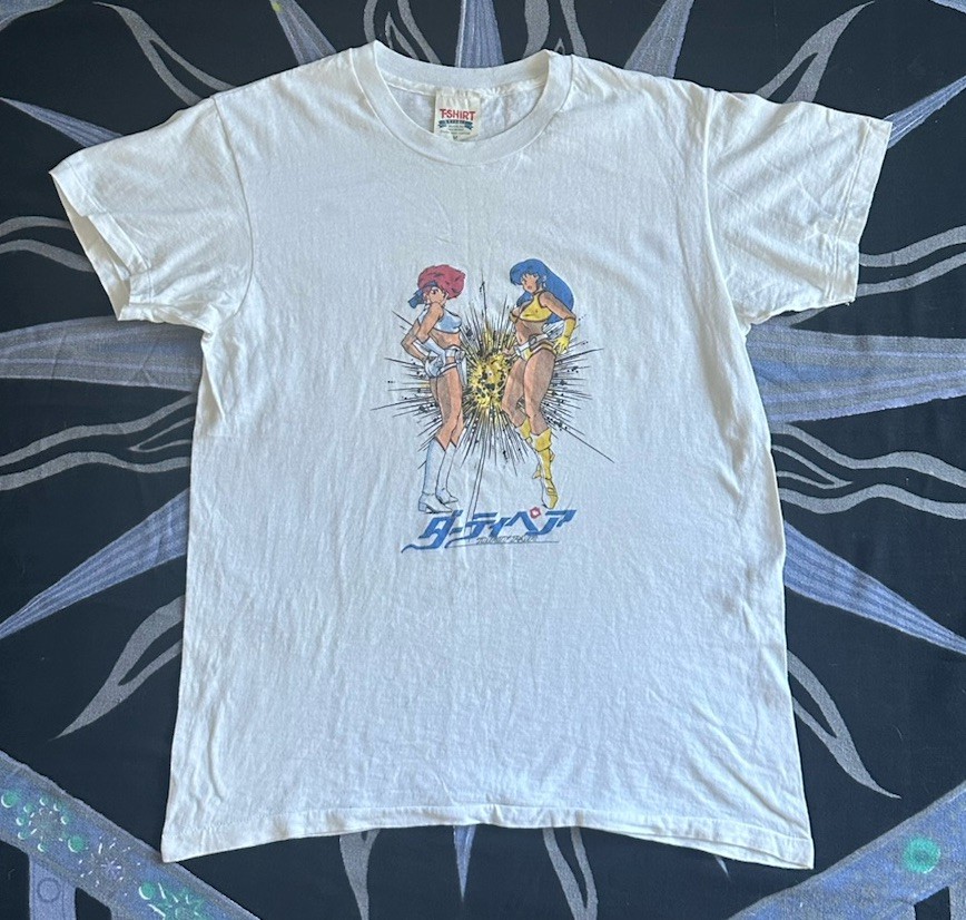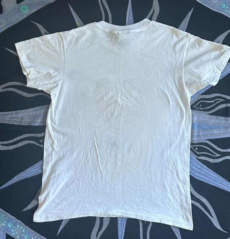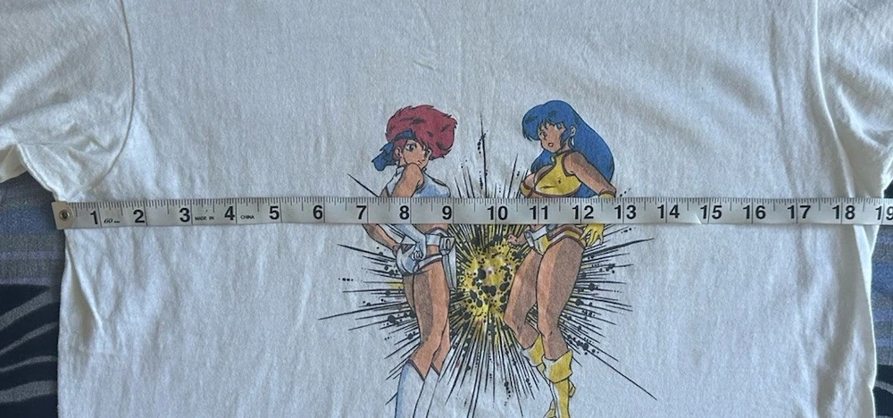 The product is a vintage 1994 men's size M Project A-ko anime movie promo t-shirt featuring a graphic tee style with a grunge look. Made from a cotton blend material in white color, this short sleeve shirt has a chest size of 36 inches and a shoulder to shoulder measurement of 17 inches. With an original design and single stitch construction, this retro shirt from the 1990s is a unique piece of men's vintage clothing that was made in the United States by T-Shirt Express. This rare vintage t shirt is in good condition with no holes but a few light stains. Hard to capture with a camera they are so sleight (See Photos) Keep in mind this shirt is a vintage Medium so will fit like a modern day small. This shirt is sold in as is condition.
