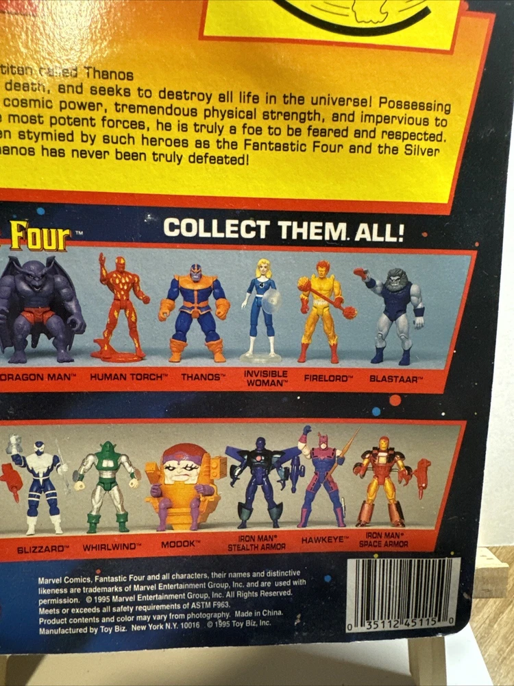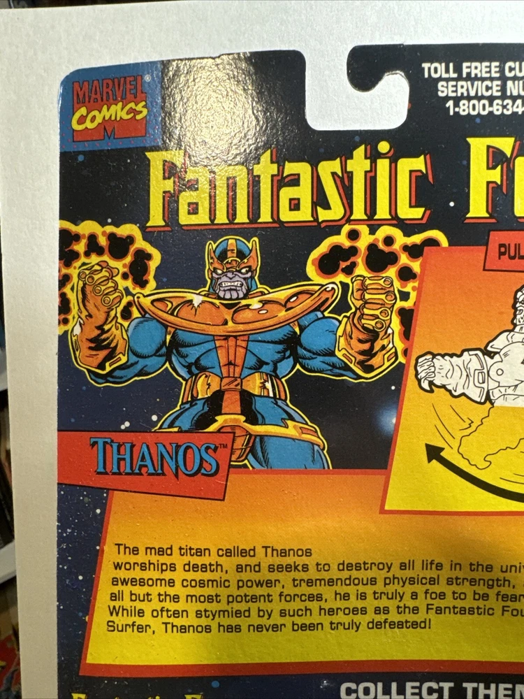 Vintage 1994 Toy Biz Marvel Fantastic Four Thanos Package Error Figure New MOC. Condition is New. Shipped with USPS Ground Advantage.