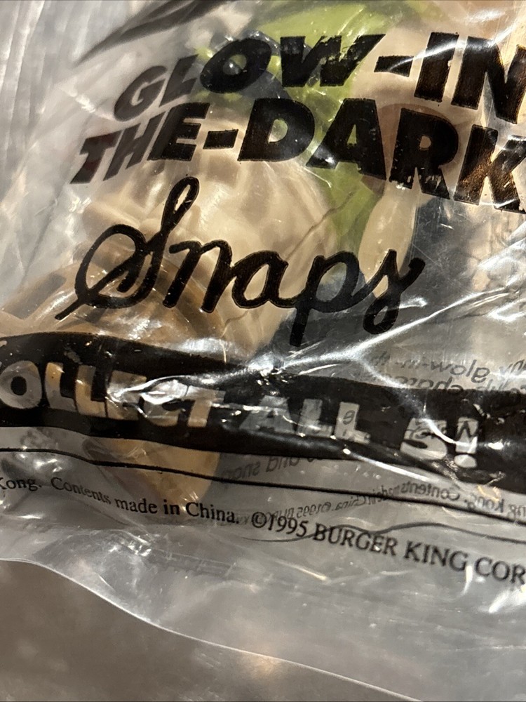 Free Shipping on orders over $75.00 Combined shipping counts. This vintage toy is a set of Glo-Force Toy Snaps from 1995, originally offered by Burger King. The toy snaps glow in the dark and are brand new in the original packaging. Made in China, this non-domestic product is ideal for children aged 3 and up, with an age range spanning from 4 years old to adults. The Glo-Force Toy Snaps are part of the Glo-Force character family and provide entertainment for various age levels.