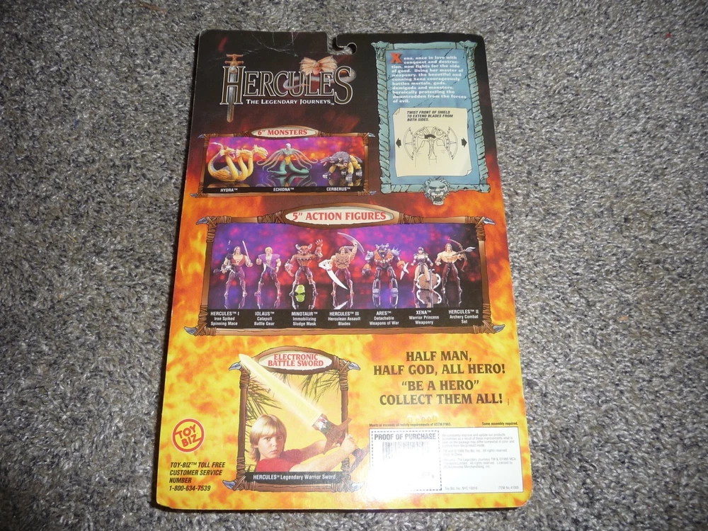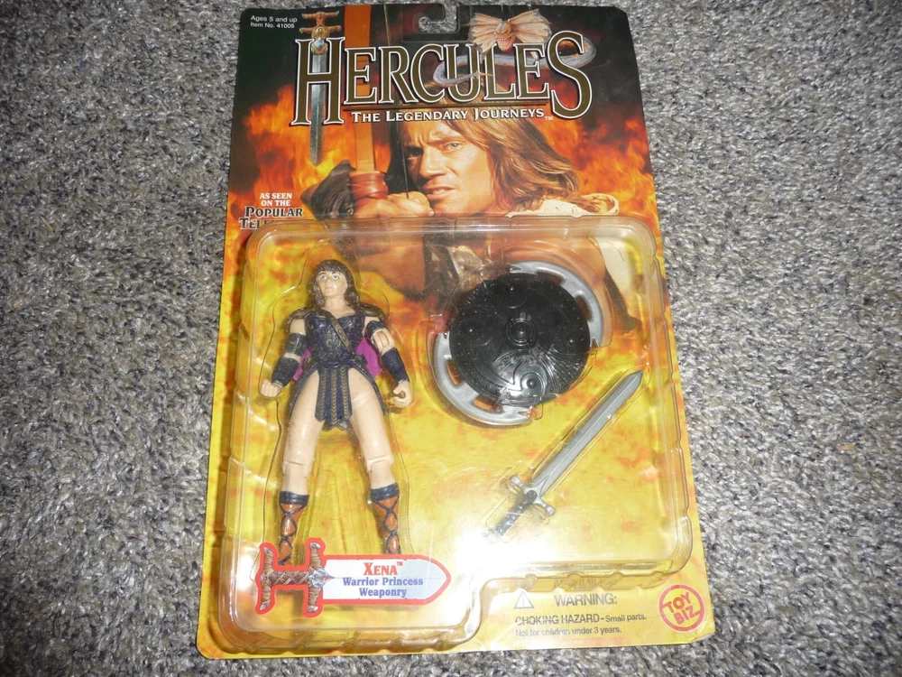 This is a New in Box Hercules The Legendary Journeys Xena Warrior Princess Figure. It is from 1995 and it is in great condition! The packaging and card are pretty great for almost 30 years old! It is made by Toy Biz and it looks like I could have just pulled it off the shelf in 1995! Please see the photos!