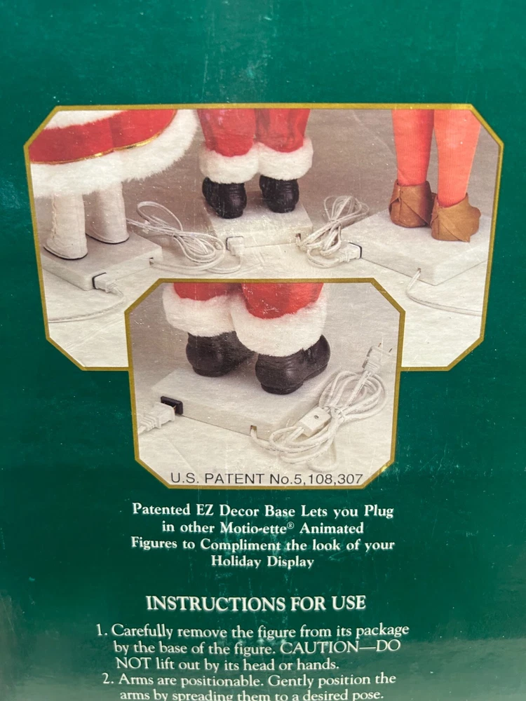 Vtg 1995 Holiday Time Christmas Motion-ettes 25" Working Santa Moving Dispay.This is moving Santa only-no music,no lights.In very good used condition-no broken or missing parts,no stains.In original box-the box is not in great condition-please see all pictures for condition details WE OFFER COMBINED SHIPPING AND MULTI-ITEM PURCHASE DISCOUNTS.IF YOU HAVE ANY QUESTIONS, PLEASE LET US KNOW