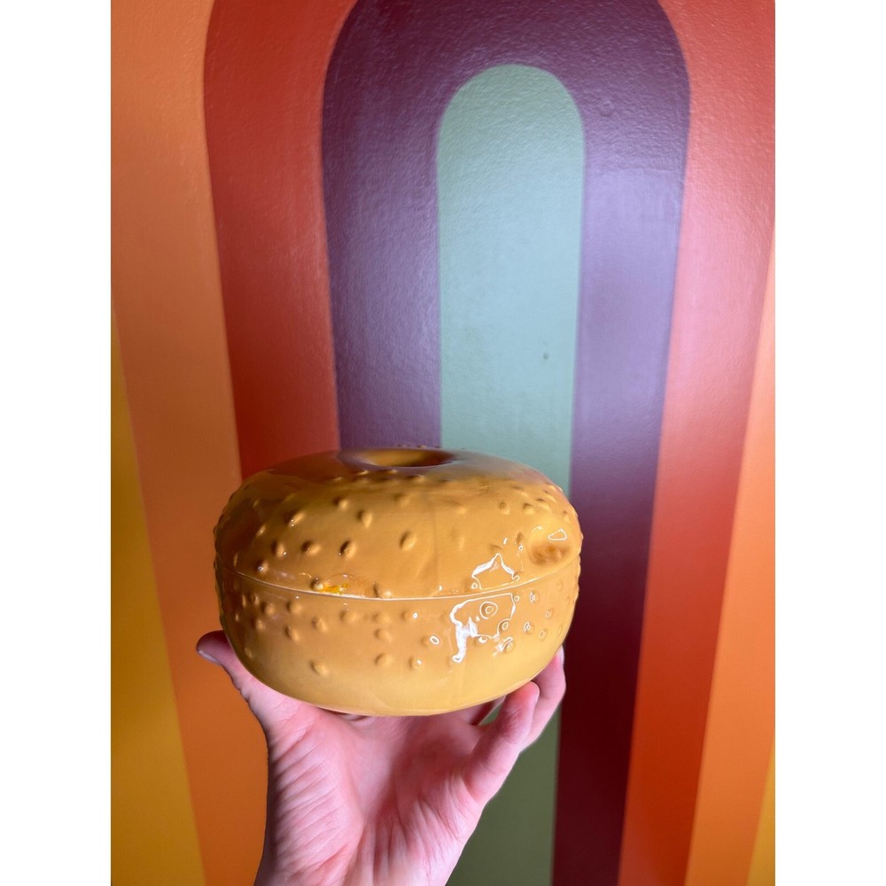 Cream cheese bagel holder keeper ceramic food vintage MSR imports 1995 - small chips please see very small chips. review all pictures before purchasing Shipping from Canada so please allow extra time, discount on shipping for multiple things bought so please message if buying more then one item. All items are vintage/preloved and may show that. Any indiscretions will be noted, but please always reach out with any questions. Thanks for checking out Scaredy Cat Vintage - Amanda 🙂