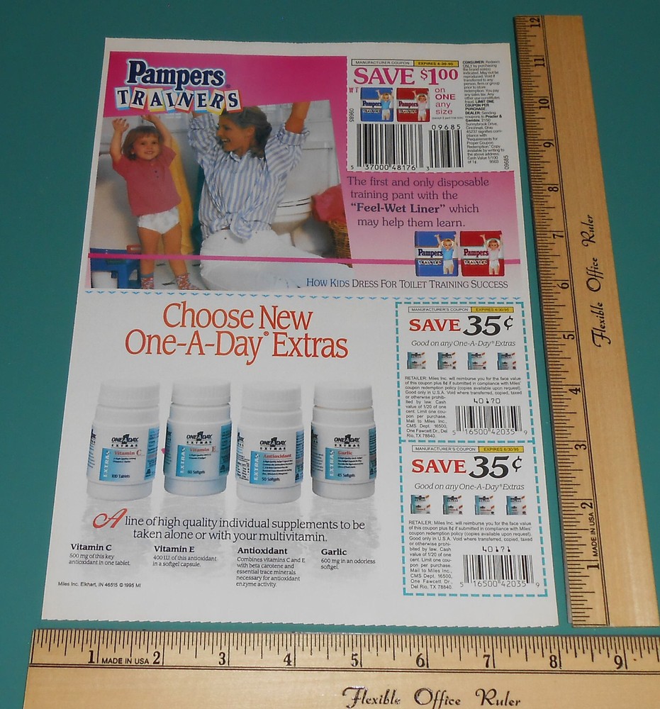 Original Vintage Coupon Circular Print Advertisement Year : 1995 Country : USA Brand : Pampers Trainers Pages : 1 Size : Childrens Child Bedwetting Potty Training This Listing Is For The Original Coupon Advertisement Only Combined Shipping Available : For multiple orders, please place items in cart and request total