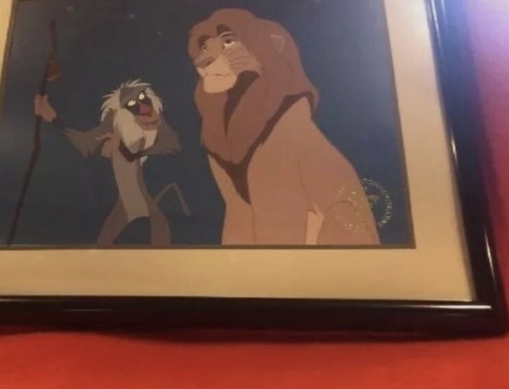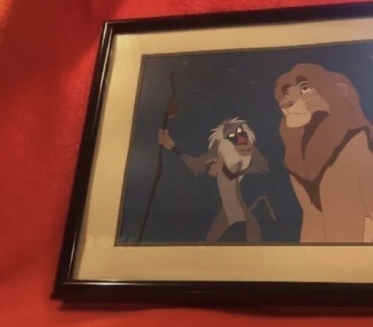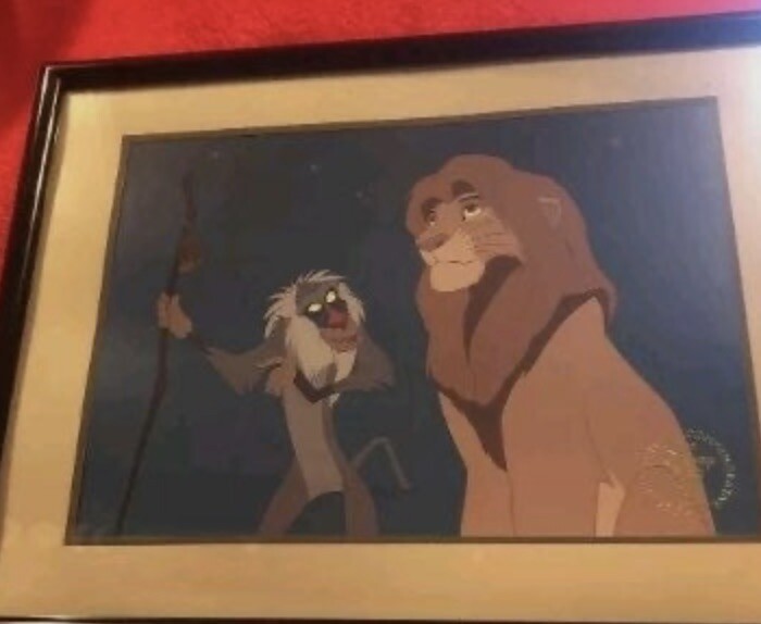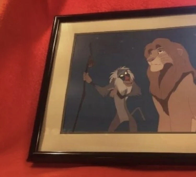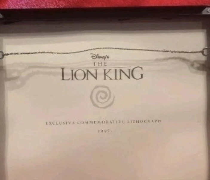 Vintage 1995 disneys the lion king exclusive commerative lithograph with frame. Preowned. The frame does have some minor scratches but in otherwise good condition. Size is 14 1/4 x 11 1/4