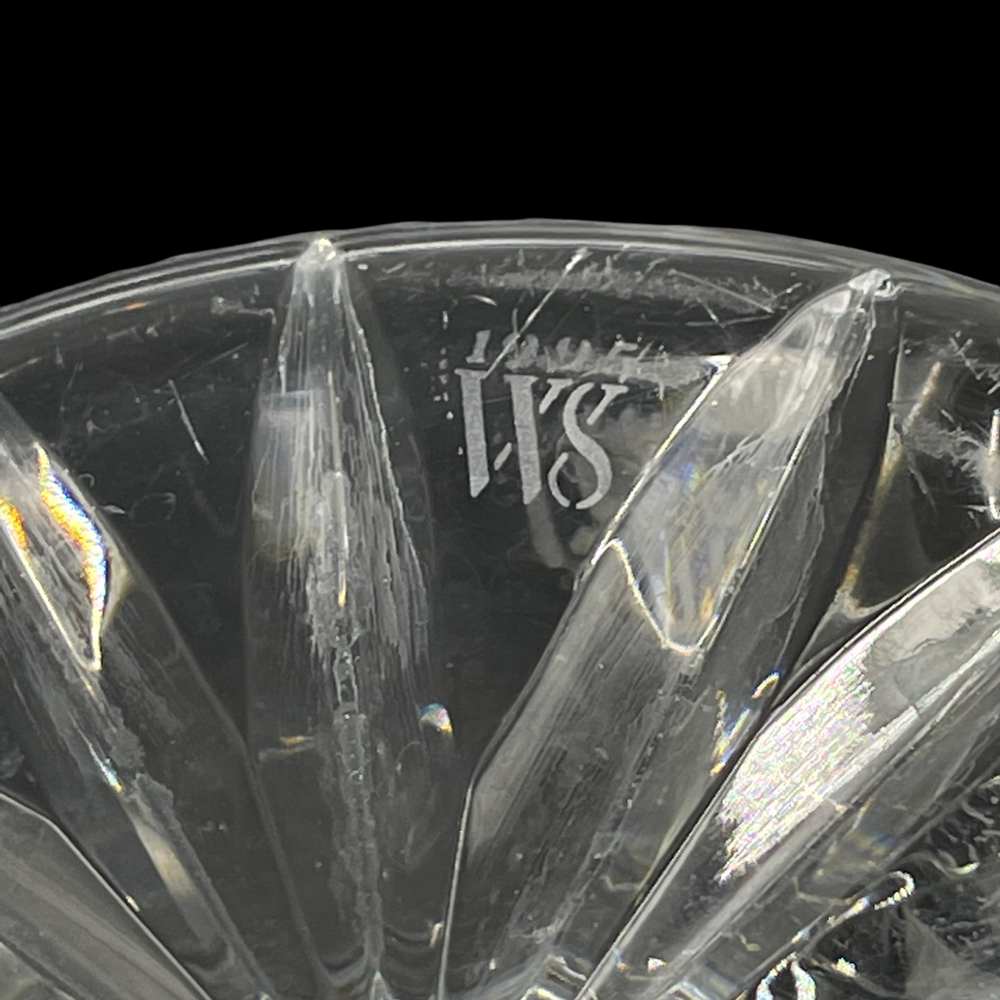 Vintage Waterford Crystal 1995 WS Waterford Society Footed Penrose Flower Vase Gorgeous WS Waterford Society vase with castle cut top rim. Acid etched on base. 8 1/2" tall and 5" diameter at top rim.