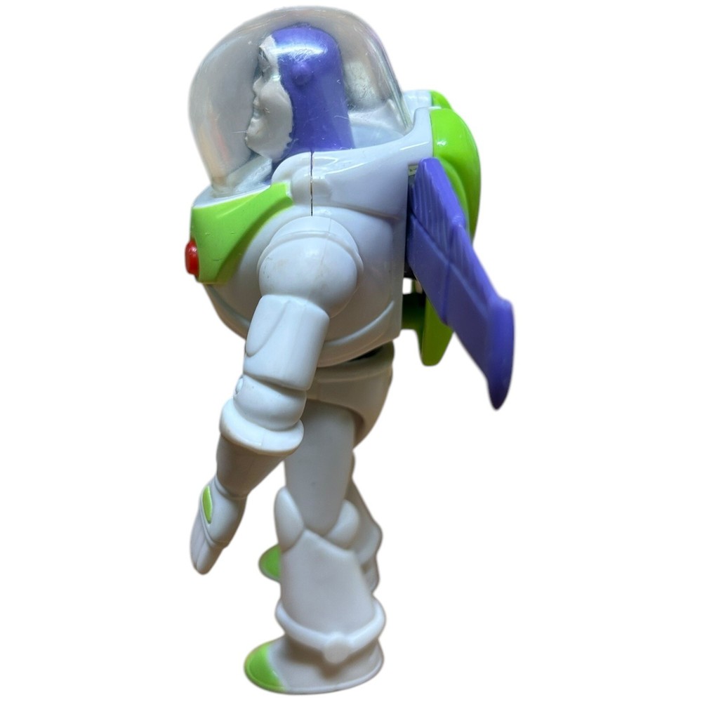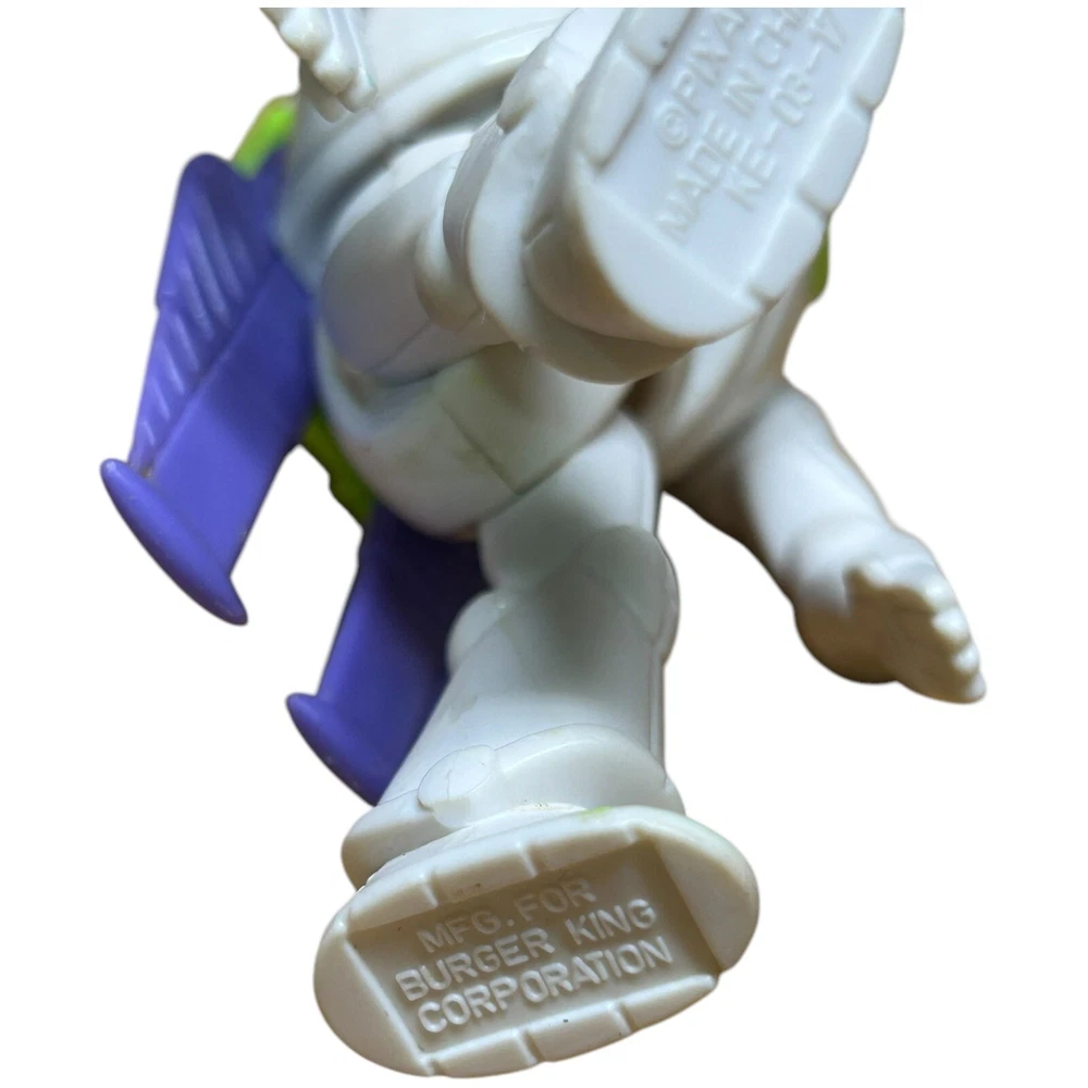 The product is a vintage Burger King kid's meal toy from 1996 featuring Buzz Lightyear from Disney Pixar's Toy Story. It is a 4-inch figurine of Buzz Lightyear and is part of a toy promotion tied to the popular animated film. Made in China, this toy is recommended for ages 4 and up.