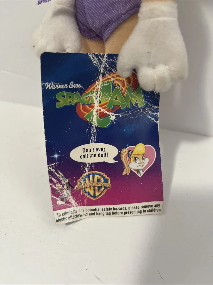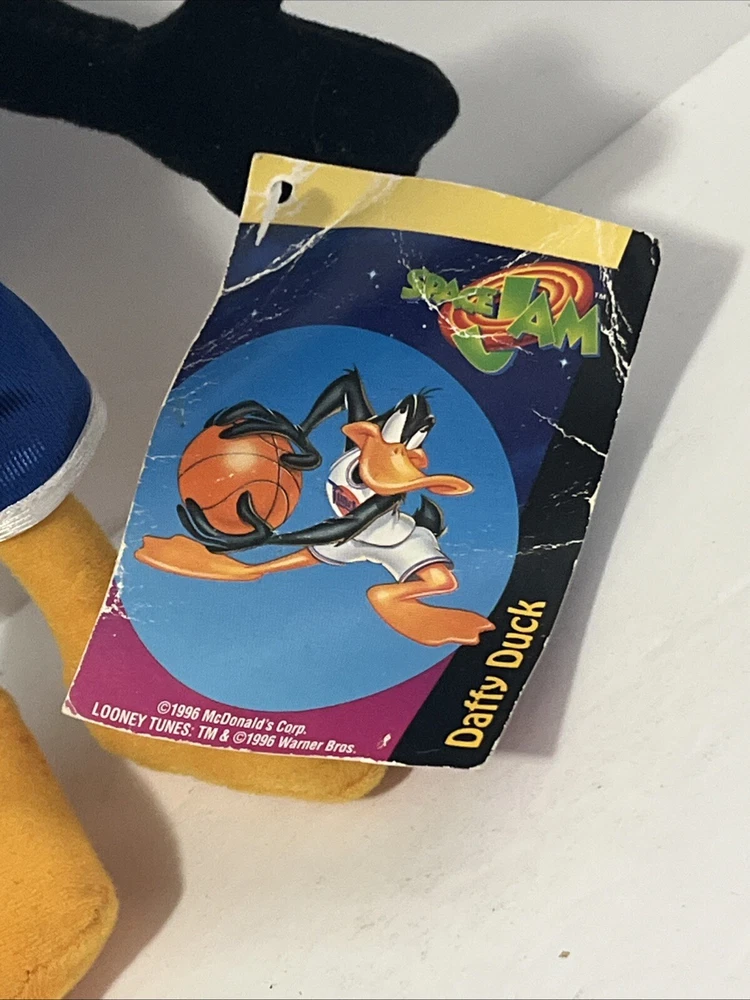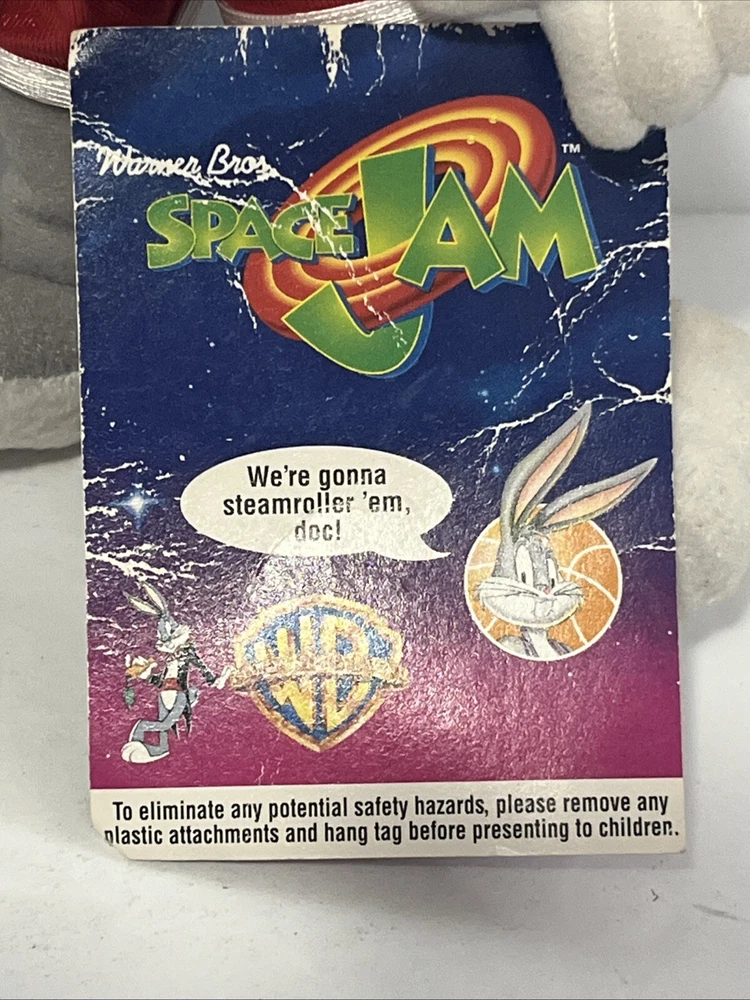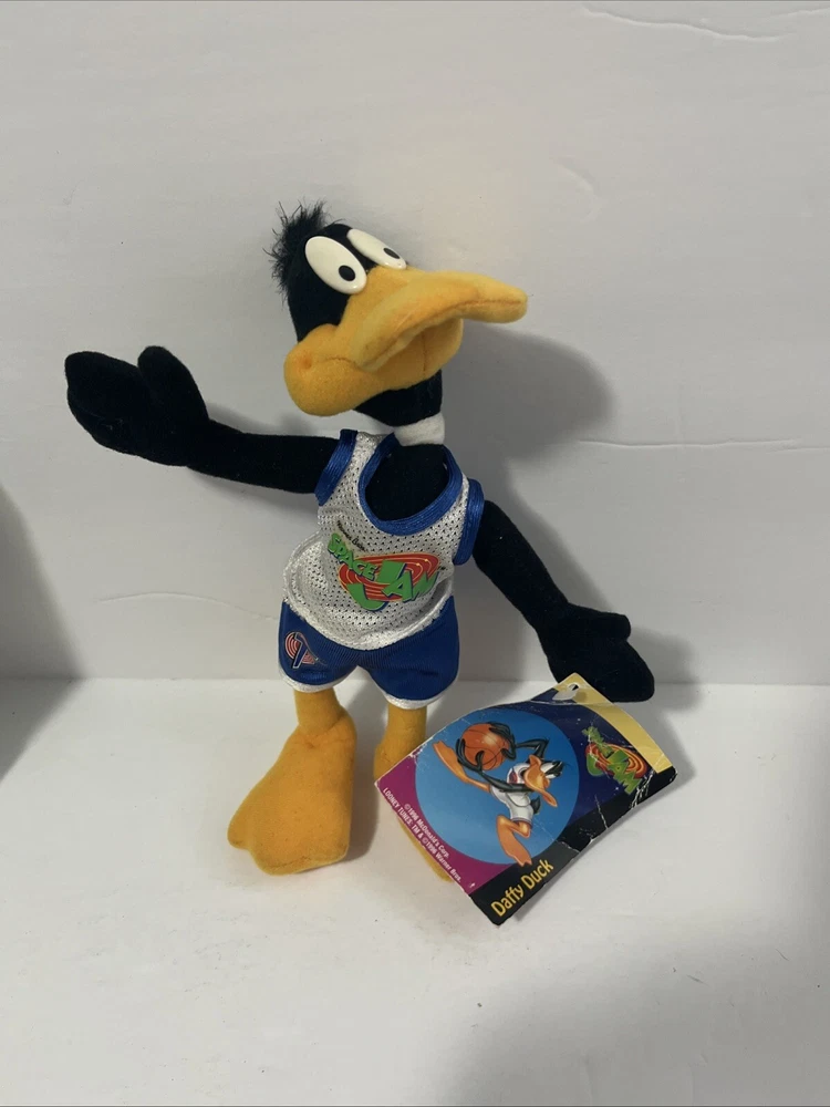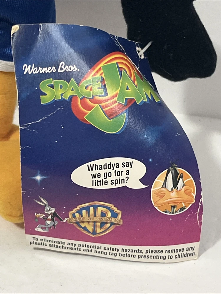 This vintage plush stuffed animal from 1996 is a must-have for any Space Jam fan. Featuring the beloved characters of Duck and Bunny, this small (6-14 in) plush is perfect for cuddling or displaying. The brand is Warner Bros and the type is a plush, making it a great addition to any stuffed animal collection. The animal family is Space Jam, and it is sure to bring back memories of childhood. Don't miss out on this rare find!