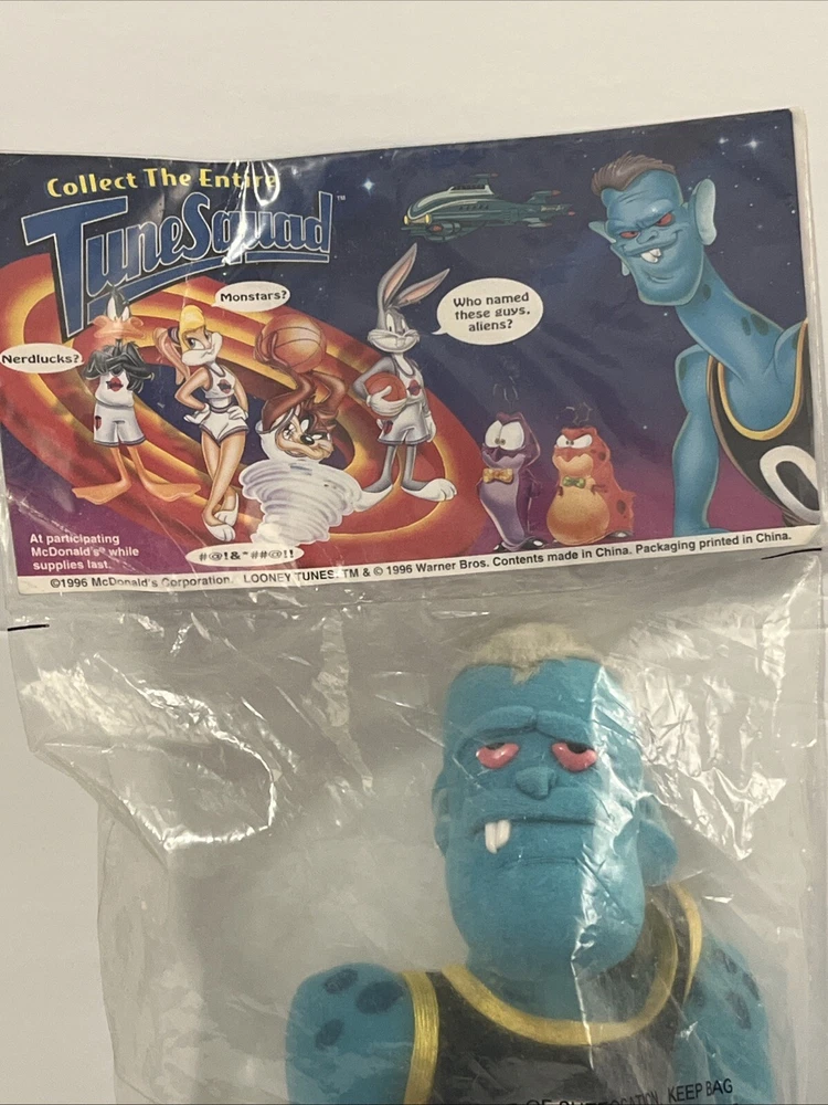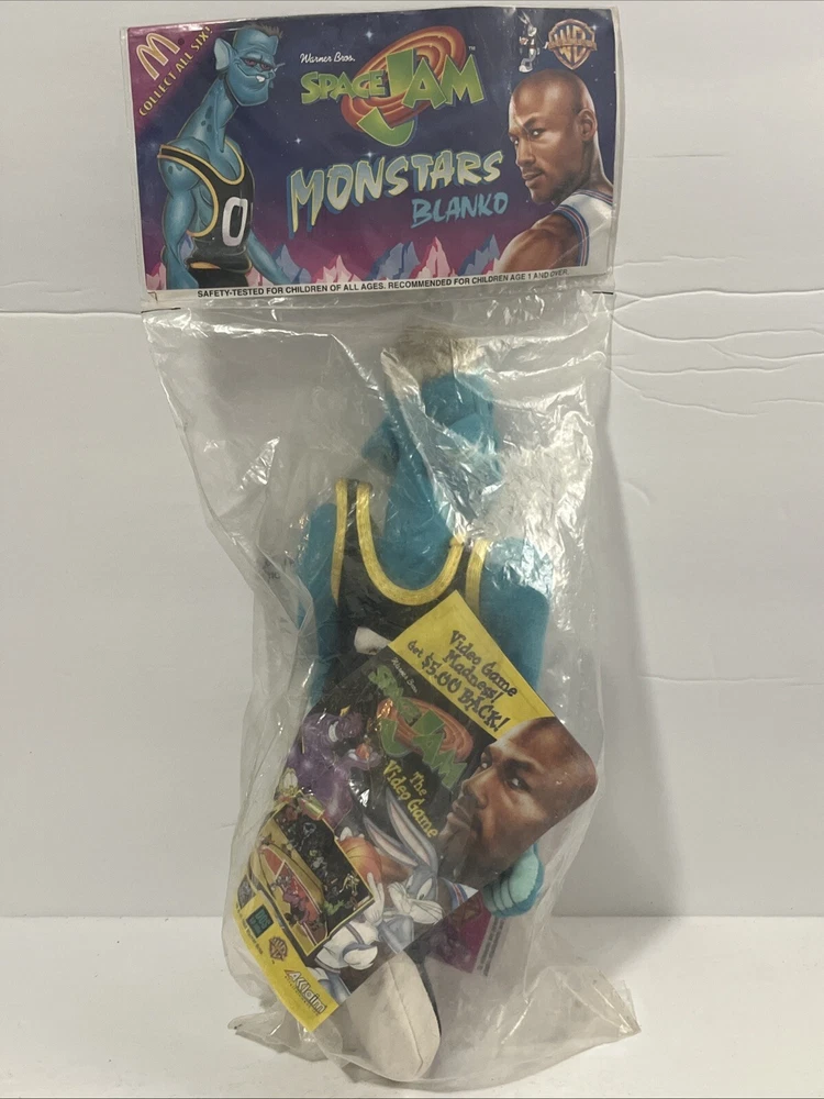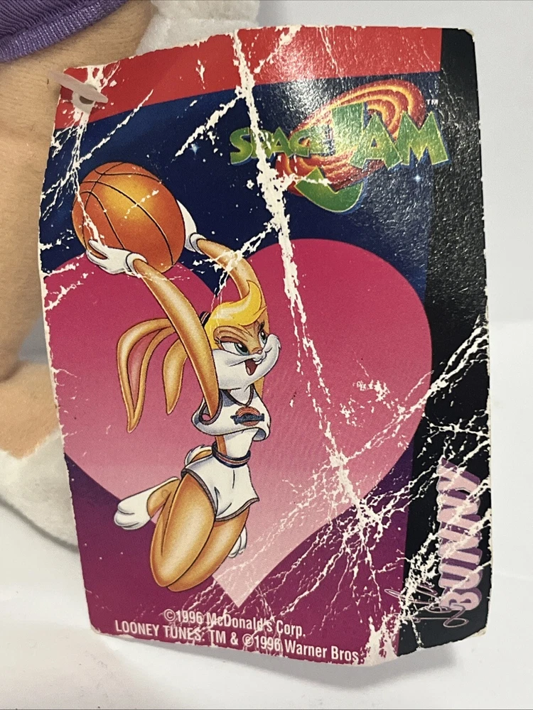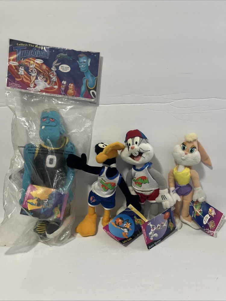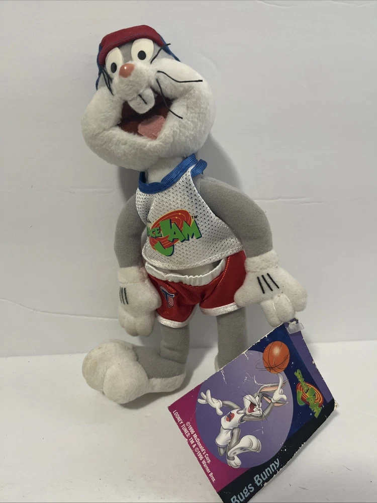 This vintage plush stuffed animal from 1996 is a must-have for any Space Jam fan. Featuring the beloved characters of Duck and Bunny, this small (6-14 in) plush is perfect for cuddling or displaying. The brand is Warner Bros and the type is a plush, making it a great addition to any stuffed animal collection. The animal family is Space Jam, and it is sure to bring back memories of childhood. Don't miss out on this rare find!