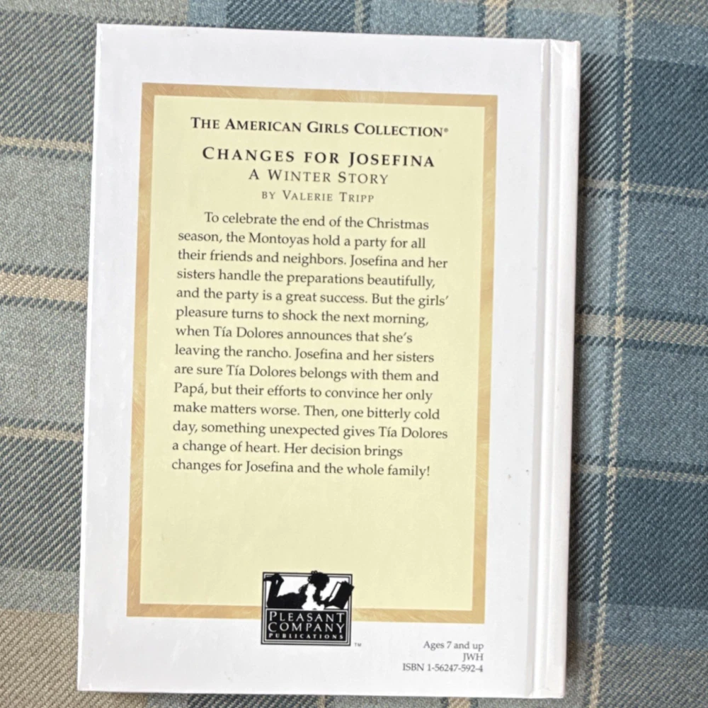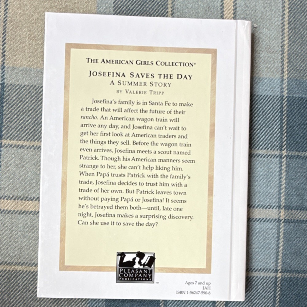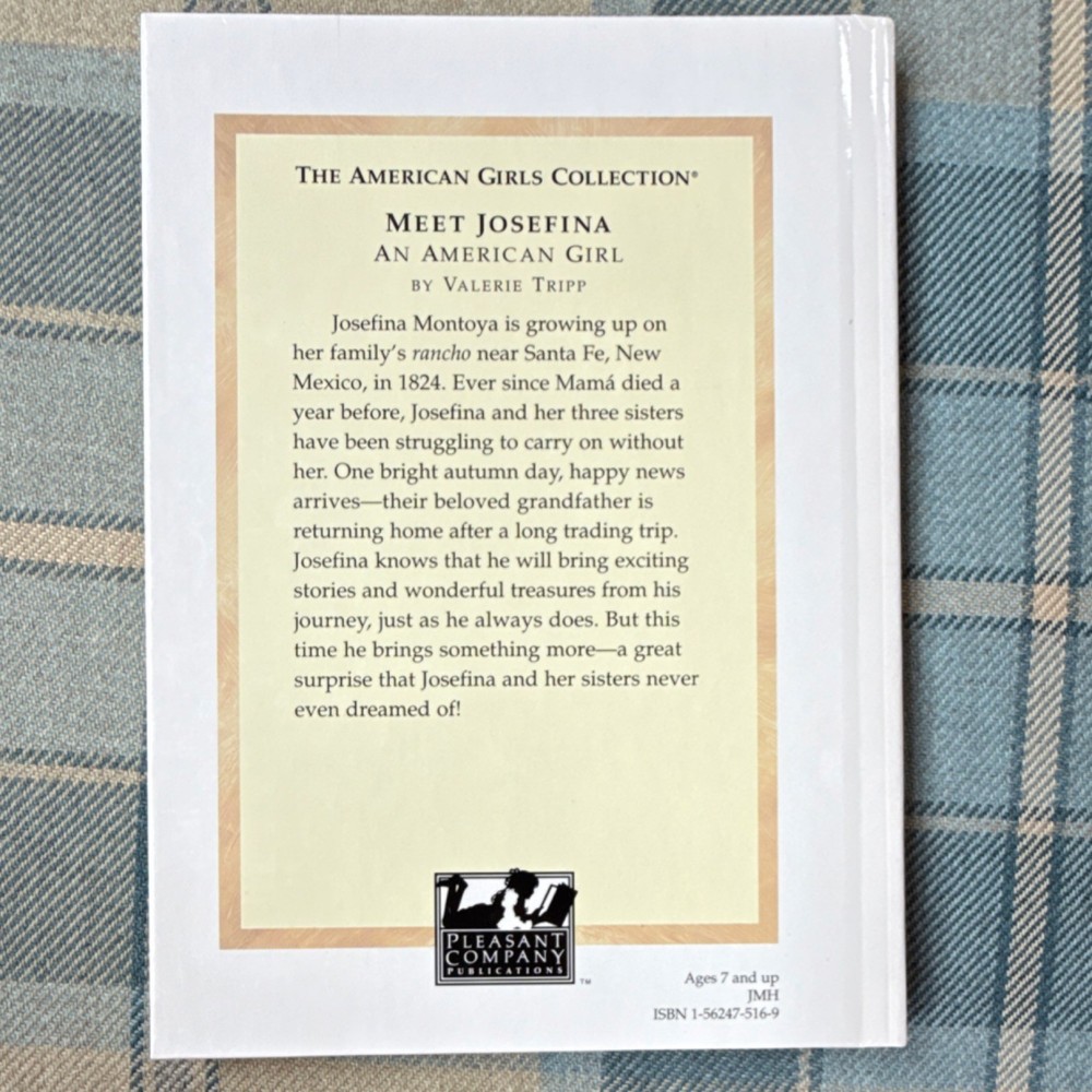 Book Series:The American Girls CollectionAuthor:Valerie TrippLanguage:EnglishBook Title:Meet JosefinaOriginal Language:EnglishIntended Audience:Ages 9-12Publisher:Pleasant Company PublicationsGenre:Children & Young AdultsTopic:HistoricalNarrative Type:FictionCountry of Origin:United StatesFormat:HardcoverFeatures:IllustratedInscribed:YesType:Novel