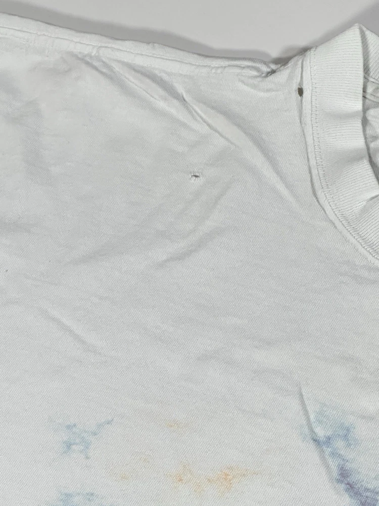 Vintage Walt Disney World 25 That Was Then This Is Now Castle 1997 T-Shirt Sz XL Okay - to - kinda poor condition overall - distressed vintage disney shirt - see ALL photos very closely See photos for measurements Shirt has moderate- pretty heavy wear/tear overall throughout - some discoloration/fade in while color throughout - some series of pinholes throughout front side of the tee - mostly mid - upper portion on front side - on sleeves - around collar - some light small little marks/spots on front side - near sleeve / little by graphic - trim(s) around shirt has moderate heavy stressing - distressed vintage disney tee - worn used tee - see ALL photos very closely for condition of the shirt Will ship with care