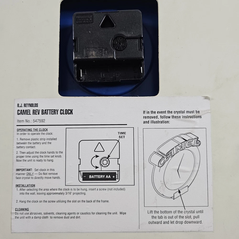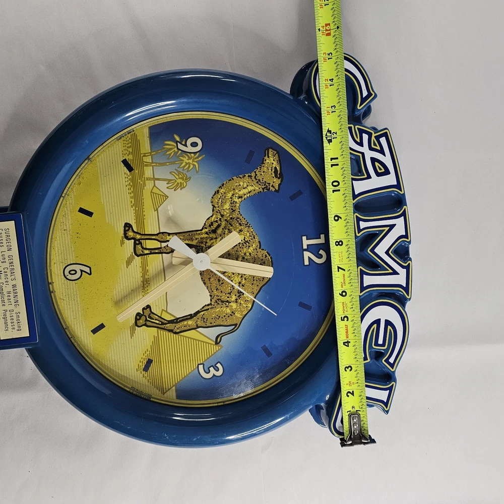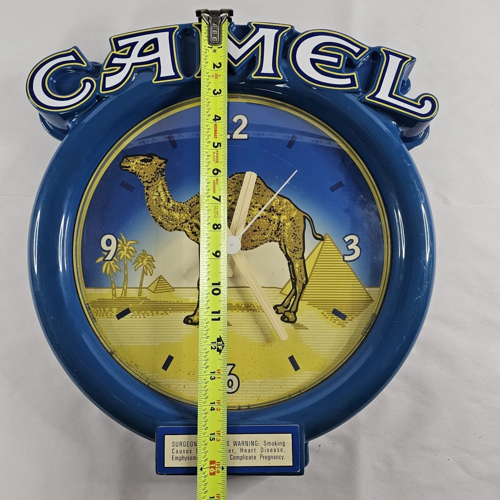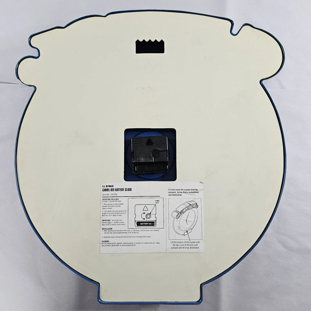 Vintage 1998 Camel Cigarettes Wall Clock Joe Camel Needs New Movement, Not Working. You Can Get A New Movement On Amazon For Under $10. Other Then It Not Working, It Is In Pretty Good Condition. Has One Little Spot On The Outer Back That Has Chipped A Little Shown In The Last Picture. Shows Some Minor Signs Of Storage Wear/Dust/Dirt. Any Returns Will Be Free, But Will Accrue A 50% Restocking Fee. This Was Given To Me Along With A Bunch Of Other Camel/RJ Reynolds Items, From A Family Friend Who Was A Rep For Them For Many Years In The Early 1980s Through The Early 2000s. I Have Many Other Camel/RJ Reynolds Items Listed, And Will Be Listing Many More If You're Interested. Please Zoom In And Check All Pictures Closely For A More Detailed Visual Description Of Condition And Measurements. Ships Out Free Within One Business Day.