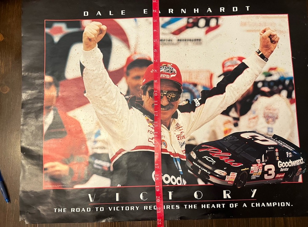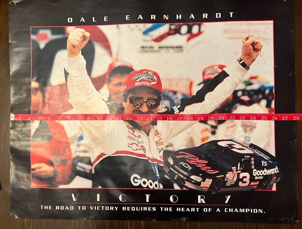 The Vintage 1998 Dale Earnhardt Poster featuring his Daytona 500 Victory Lane moment is a must-have for any NASCAR fan or auto racing enthusiast. Measuring 28" x 22" and showcasing a multi-color design, this poster captures a significant moment in racing history with Dale Earnhardt driving for Hendrick Motorsports. A collectible item from Sports Quest, Incorporated and Dale Earnhardt Inc., this poster celebrates the legacy of a legendary driver and his achievements in the world of NASCAR. Perfect for displaying in a fan's home or office, this poster is a timeless piece of racing memorabilia. That poster does show some signs of use, but it’s still in good shape, perfect for Dale Earnhardt Sr enthusiast. This poster will be shipped rolled up .
