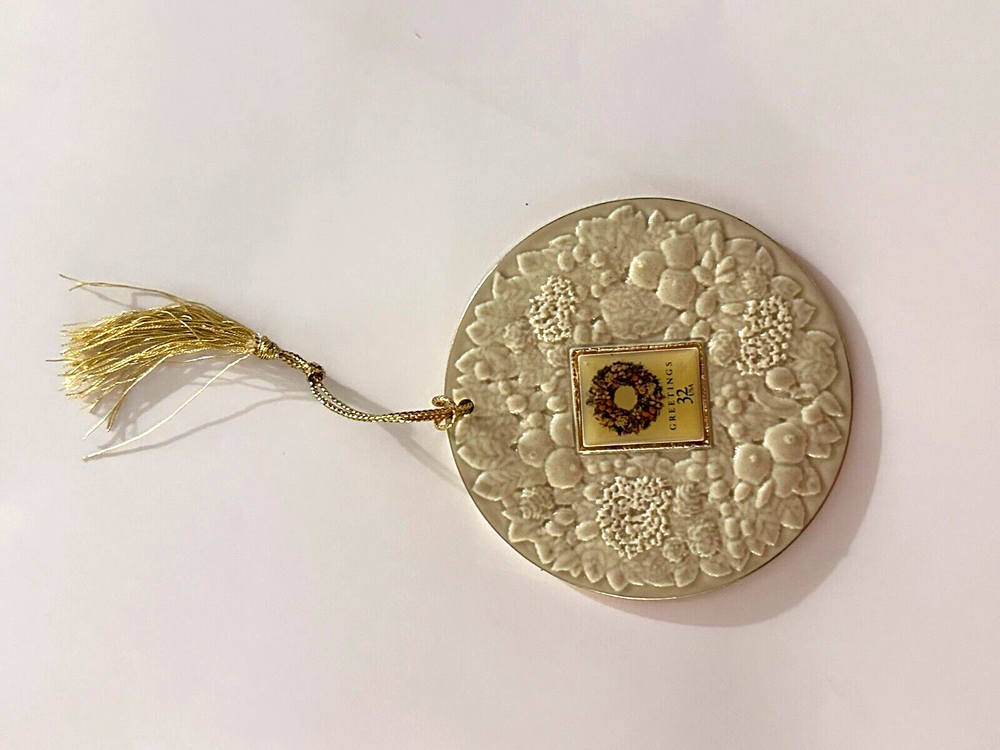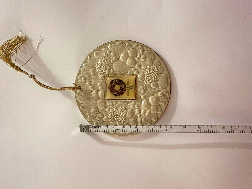 Crafted with care by The Ensemble Company, this piece is ideal for decorating your Christmas tree, wreaths, or holiday displays. Whether you’re a collector of vintage ornaments or simply looking for a unique seasonal accent, this pre-owned treasure is sure to impress. Key Features: Vintage Charm: Authentic 1998 Ensemble Company ornament with a classic floral wreath design. Intricate Detailing: Beautifully crafted with delicate floral accents for a sophisticated look. Versatile Use: Perfect for Christmas trees, wreaths, mantels, or as part of a holiday centerpiece. Durable Material: Built to last and maintain its elegance year after year. Pre-Owned Condition: Lovingly maintained and ready to bring warmth to your holiday decor. Specifications: Brand: The Ensemble Company Year: 1998 Design: Floral wreath Condition: Pre-owned, excellent vintage condition