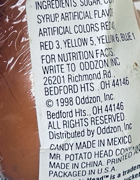 STUNNING Bought in the Disney Store in Savannah Mall in the late nineties! 20+ YEARS OLD SEALED with original candy-please don’t buy this to eat it, for display purposes only! Remember these by Pixar/Disney and Hasbro?! GARBAGE ARCHIVE Proudly Presents: RARE Hasbro candy container featuring a Toy Story character, Mr Potatohead, with original candy SEALED inside MINT! Still factory wrapped in cello! Check out our hundreds and hundreds of old confectionery candy listings, GARBAGE ARCHIVE is the only eBay exclusively selling vintage candy novelties. All our items are Buy it Now, why wait another day? NEW Listing! We combine shipping. What will you score next from GARBAGE ARCHIVE ?!