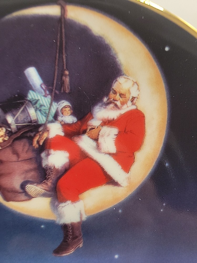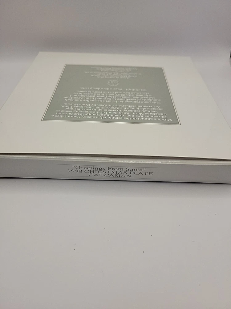 This Christmas collector plate features a beautiful winter scene with a sleeping moon and the words "Greetings From Santa" inscribed on it. The plate has a diameter of 8 inches and is made by Avon, a well-known brand in the collectibles industry. This decorative piece is perfect for any Christmas occasion and will make a great addition to any collection. The plate was manufactured in China and is part of the Avon product line. It is a multicolor collector plate that is sure to catch the eye of anyone who sees it. The California Prop 65 Warning does not apply to this item. This is a must-have for any collector of decorative plates, and it makes a great gift for anyone who loves Christmas decor.