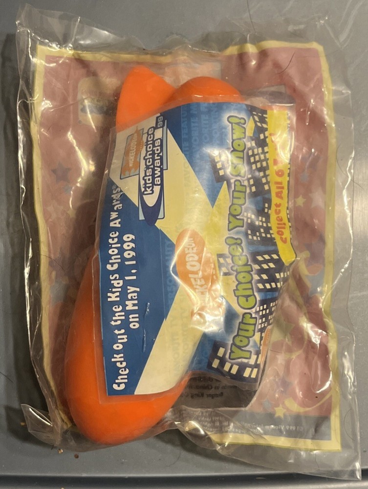 This vintage Burger King Kids Meal toy from 1999 features Nickelodeon's Kids Choice Awards Kids Club characters. The toy is part of a collection aimed at kids aged 3 and up, featuring characters associated with the popular Nickelodeon brand.
