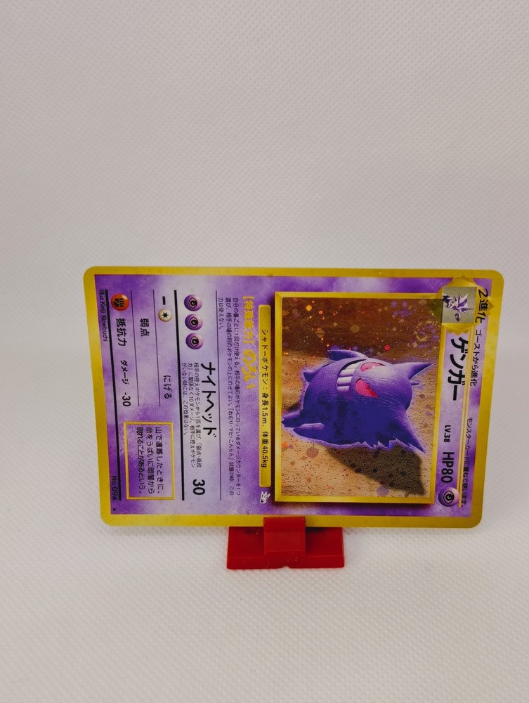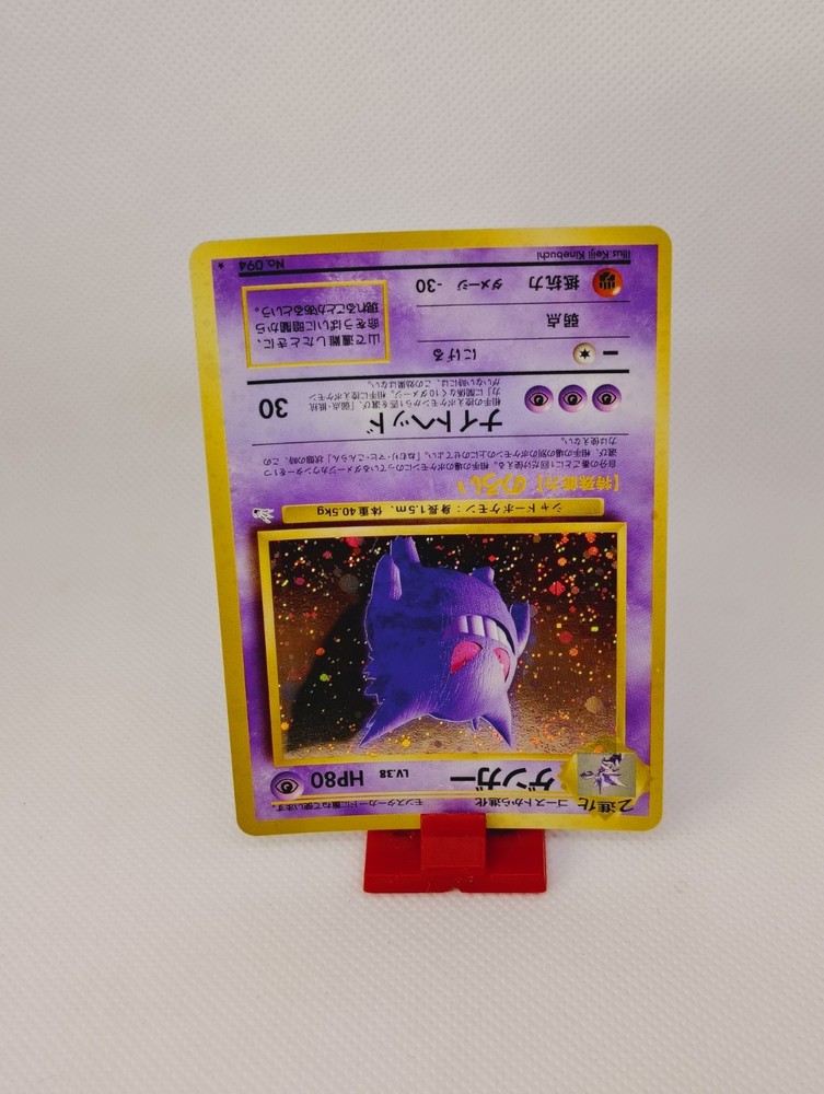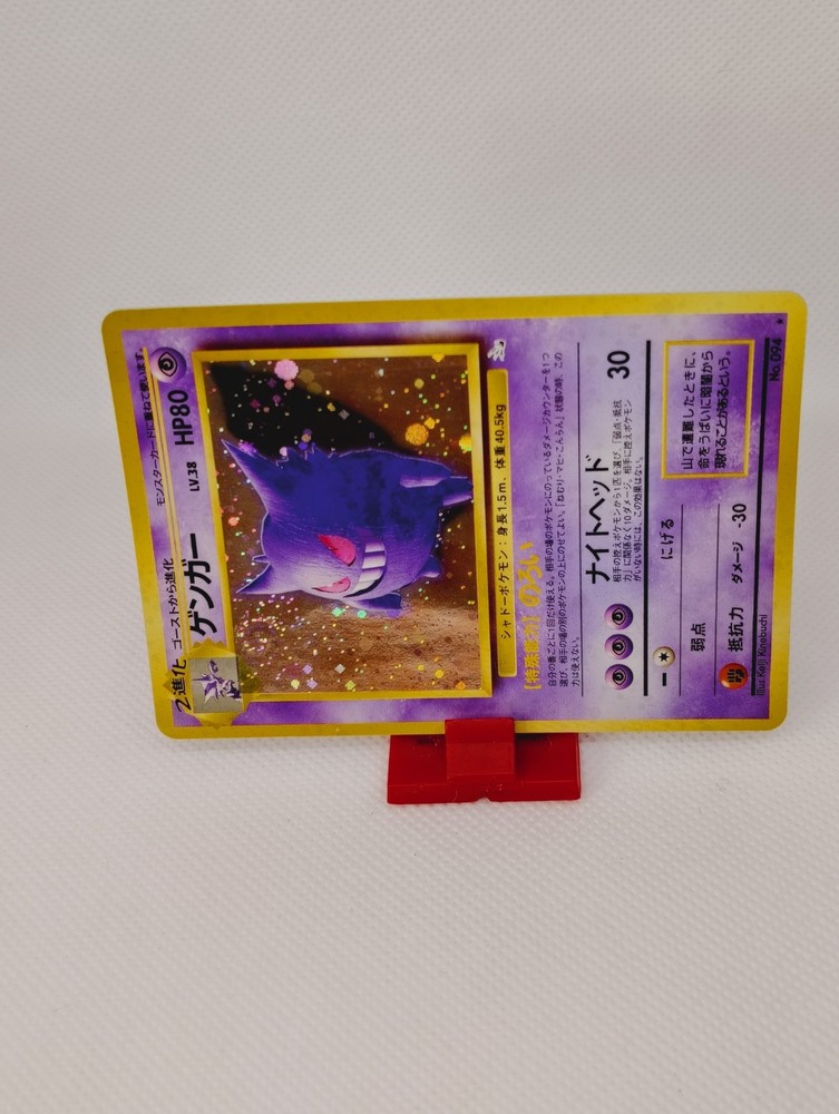 This is a rare and valuable Japanese old-back era Pokémon card featuring Gengar, a character with fire attribute and aqua monster type. The card is a limited edition, 1st edition, and unlimited promo card with a holographic finish. It was manufactured by Nintendo in 1999 and is a vintage item suitable for collectors. The card is in near mint condition and is a must-have for any Pokémon TCG collector. It features the card number 094 and is written in Japanese language. This card is a true gem and will be a great addition to any collection.