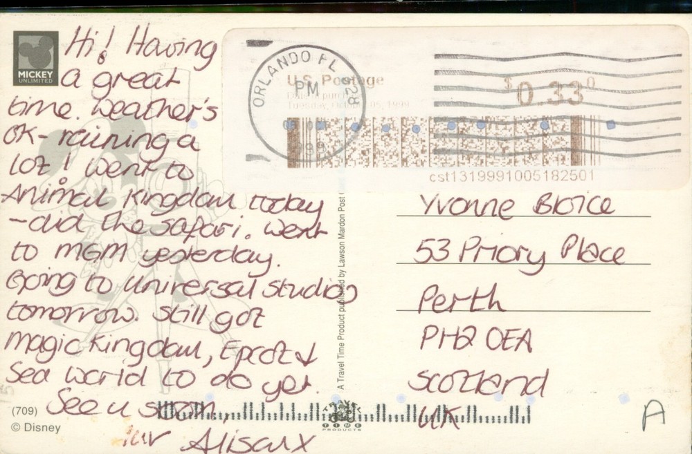 Mickey and Minnie Mouse Walt Disney Orlando Florida FL Postcard w Flowers c1999 Postcard shipping is via USPS packaged in a poly sleeve and a white cardboard mailer envelope tracking is from Post Office to Post Office. Track Page Views With Auctiva's Counter