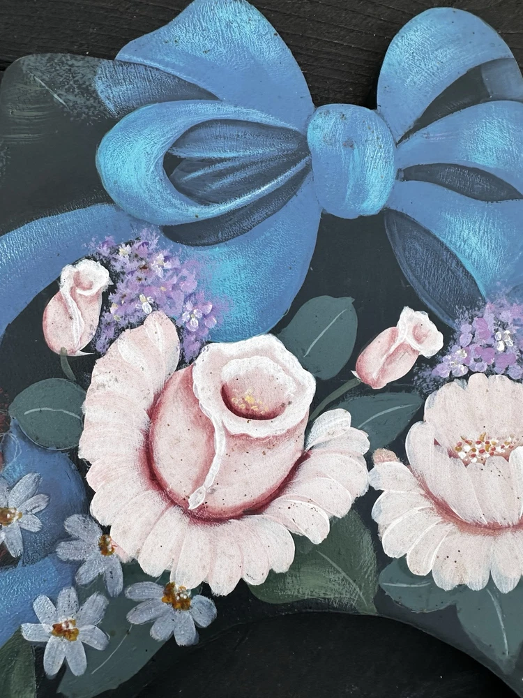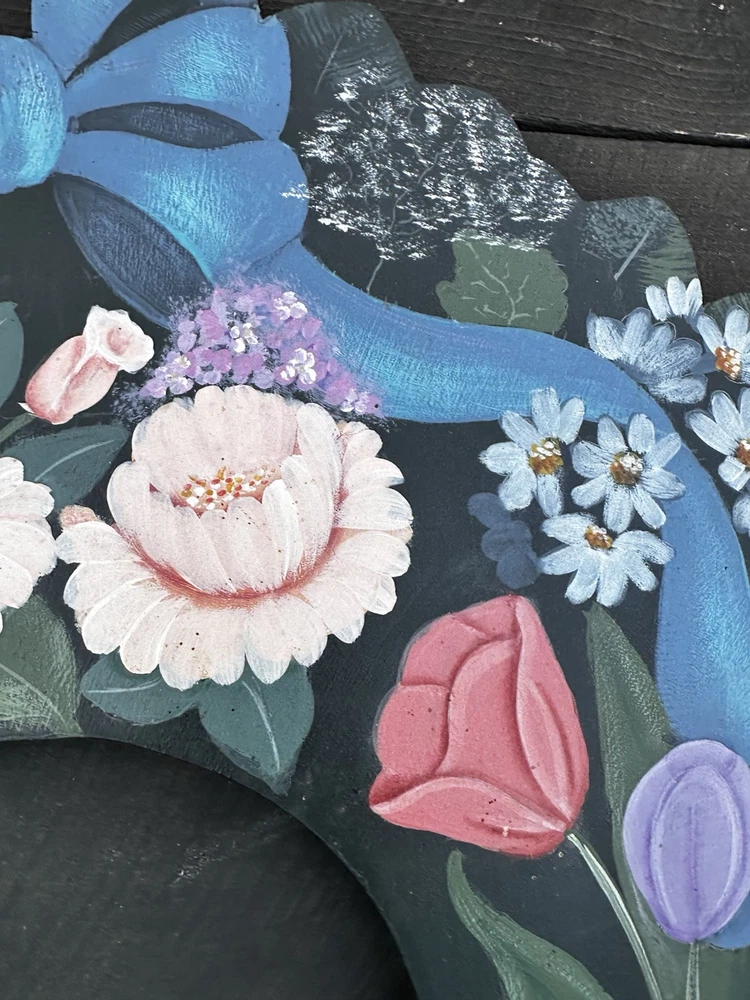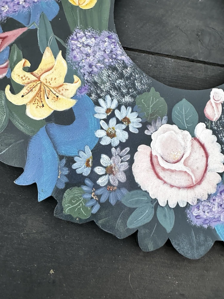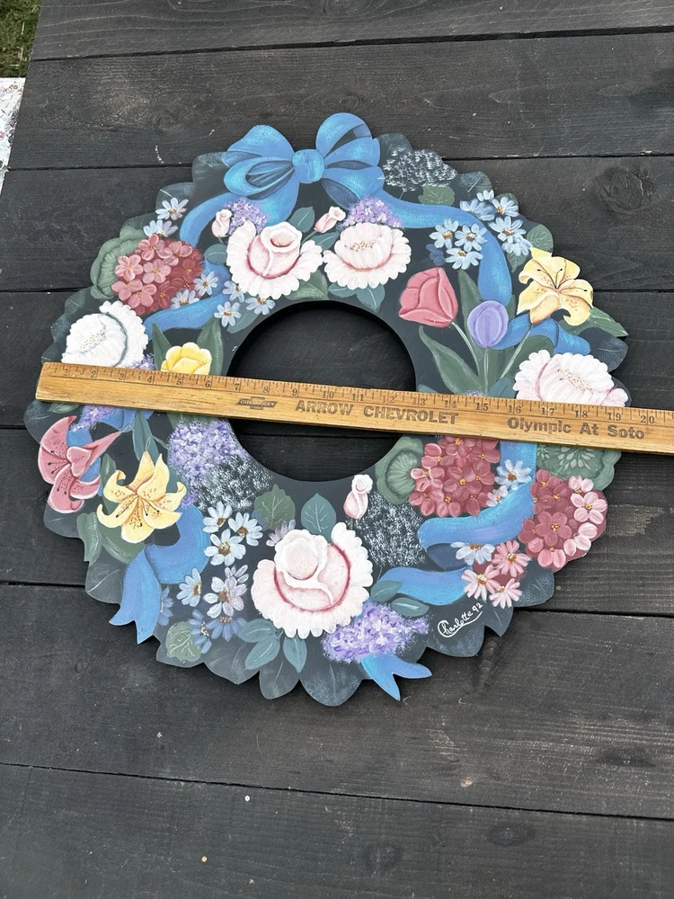 Vintage 20" Tole Painted Wreath Shabby Farmhouse Rosemary West 1992 Pattern