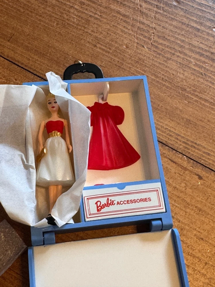 Vintage 2000 Hallmark Barbie Silken Flame and Travel Case Christmas Ornament-NIB