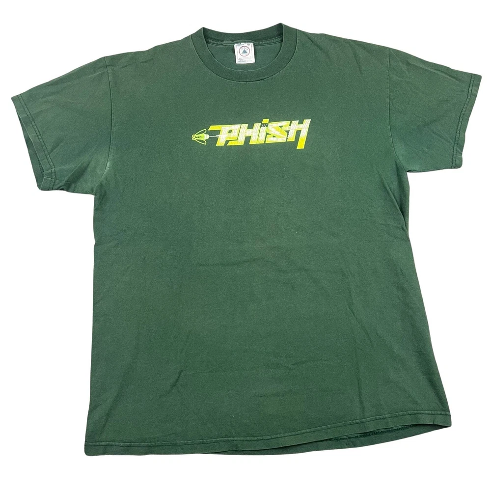 Vintage 2000 phish tour band concert music green t shirt. Beautiful. Measures 22x29.5. Minor pit staining. Please check measurements before purchasing. I do my best to show any flaws in pictures. Quick shipping! Bundles encouraged! @ants_haul on Instagram.