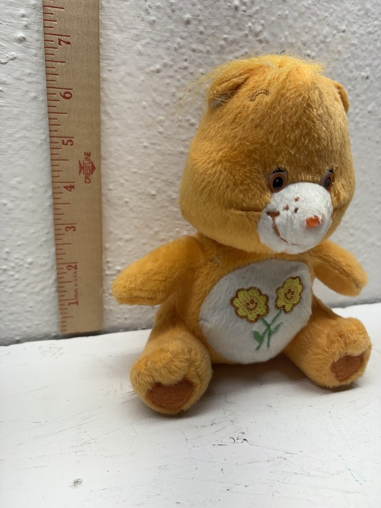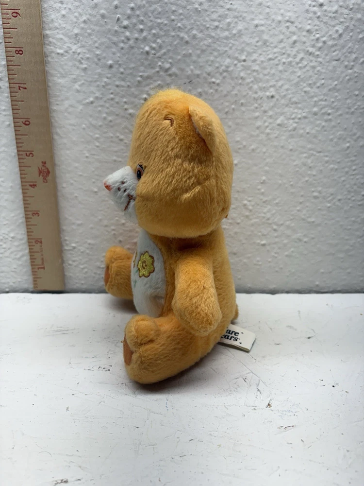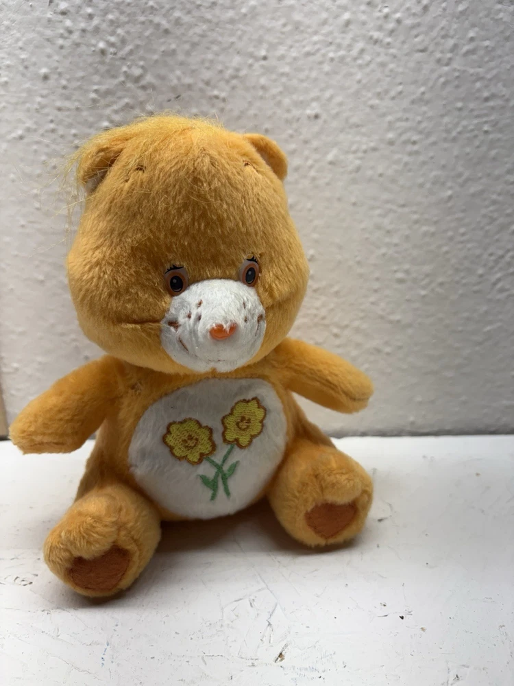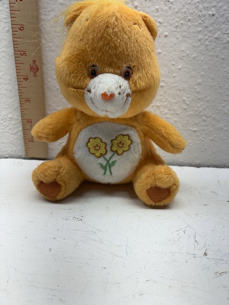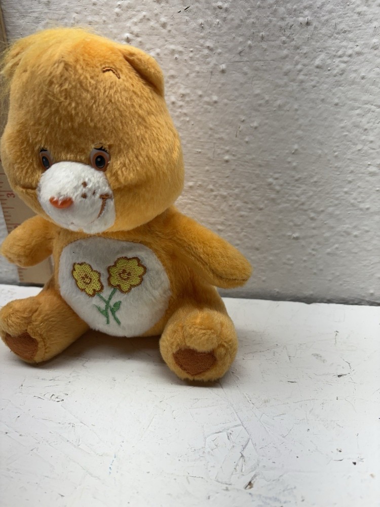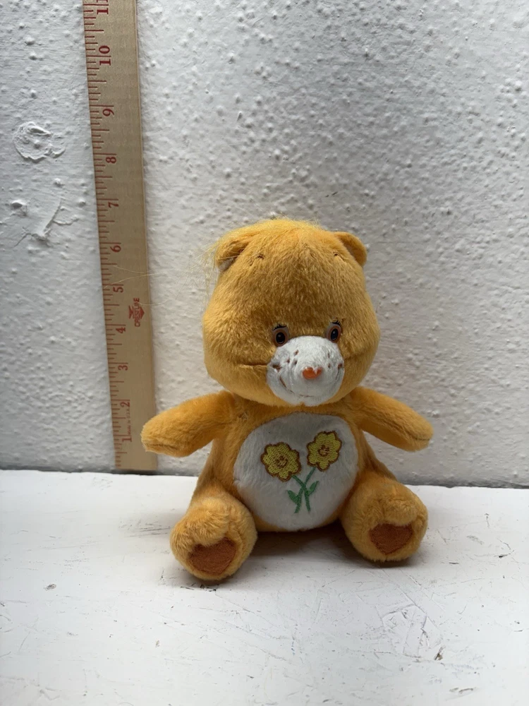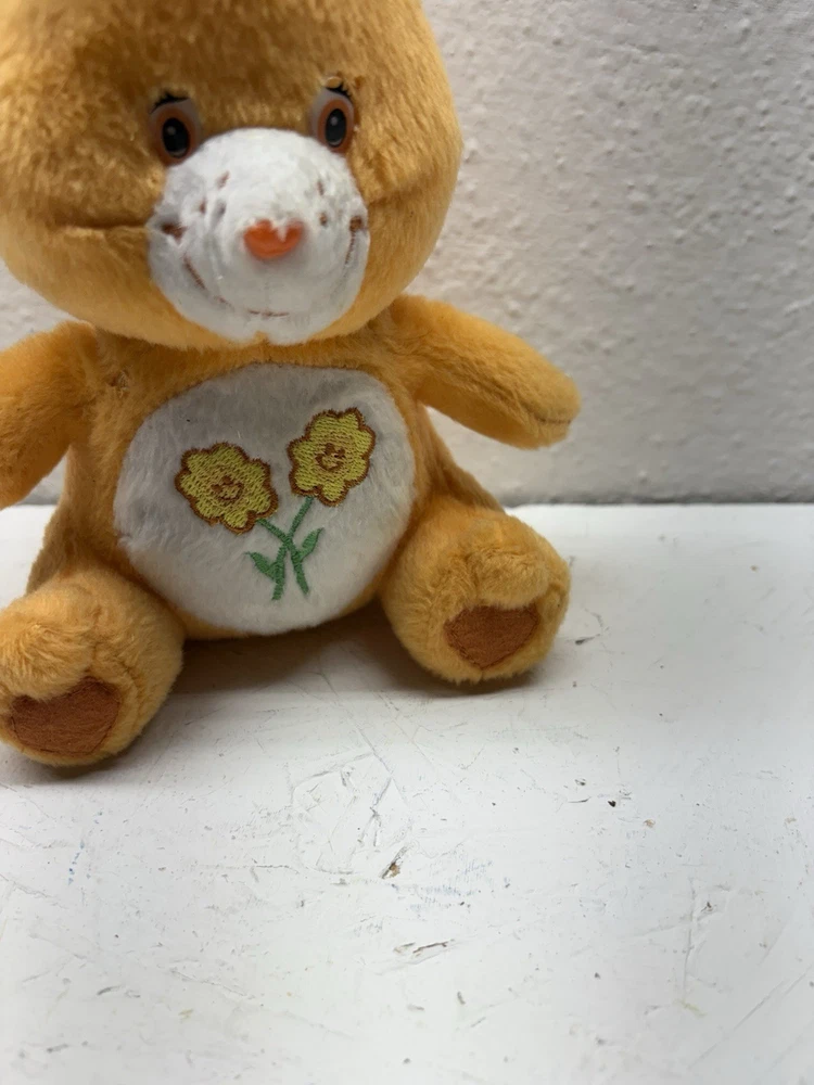 Bring home a classic! This early 2000s Friend Bear by Play Along features her signature orange fur and twin yellow daisies on her belly badge. A must-have for Care Bears collectors or nostalgic 2000s kids. Tag shows Play Along branding, and plush has a red Care Bears heart on the rear. Size: Approx. 9 inches tall Note: Hair is a bit messy from age but otherwise clean and cuddly. Perfect for: Collectors, gifts, or a dash of retro charm.