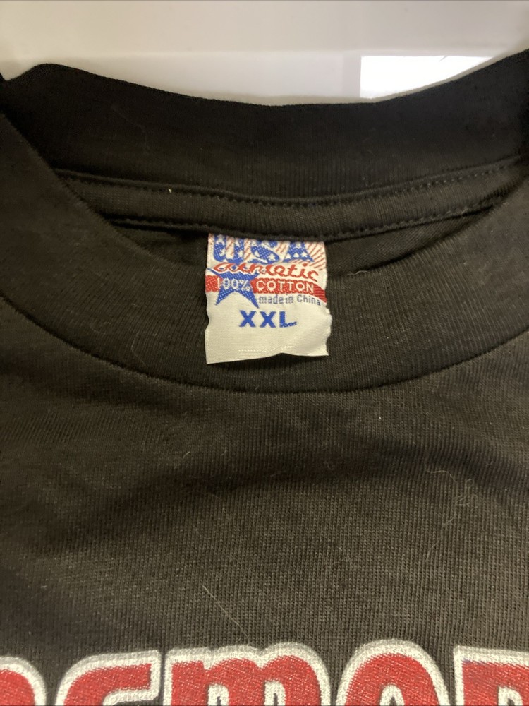 The T-shirt pictured will be received. It is from USA athletic. This T-shirt is a xxl. There are a couple small pinholes on the front which can be seen in photos. Other than that this vintage T-shirt is in good condition. Fast and secure shipping. Thanks and good luck.