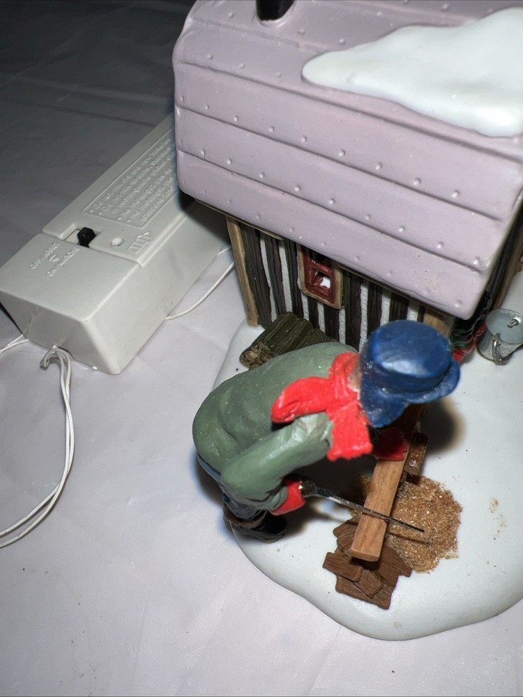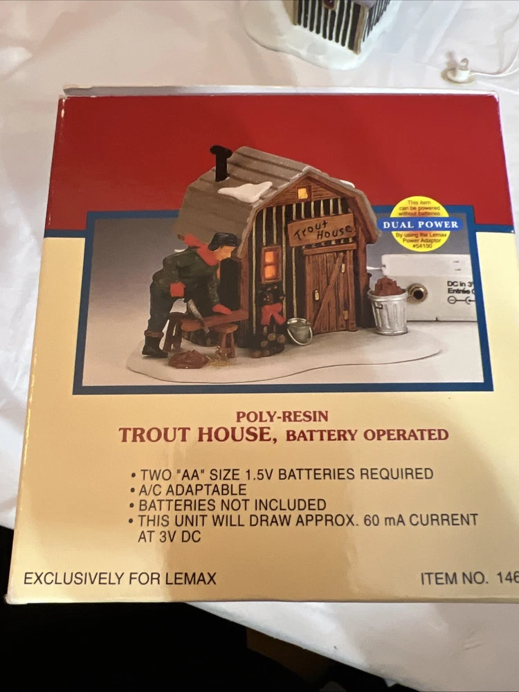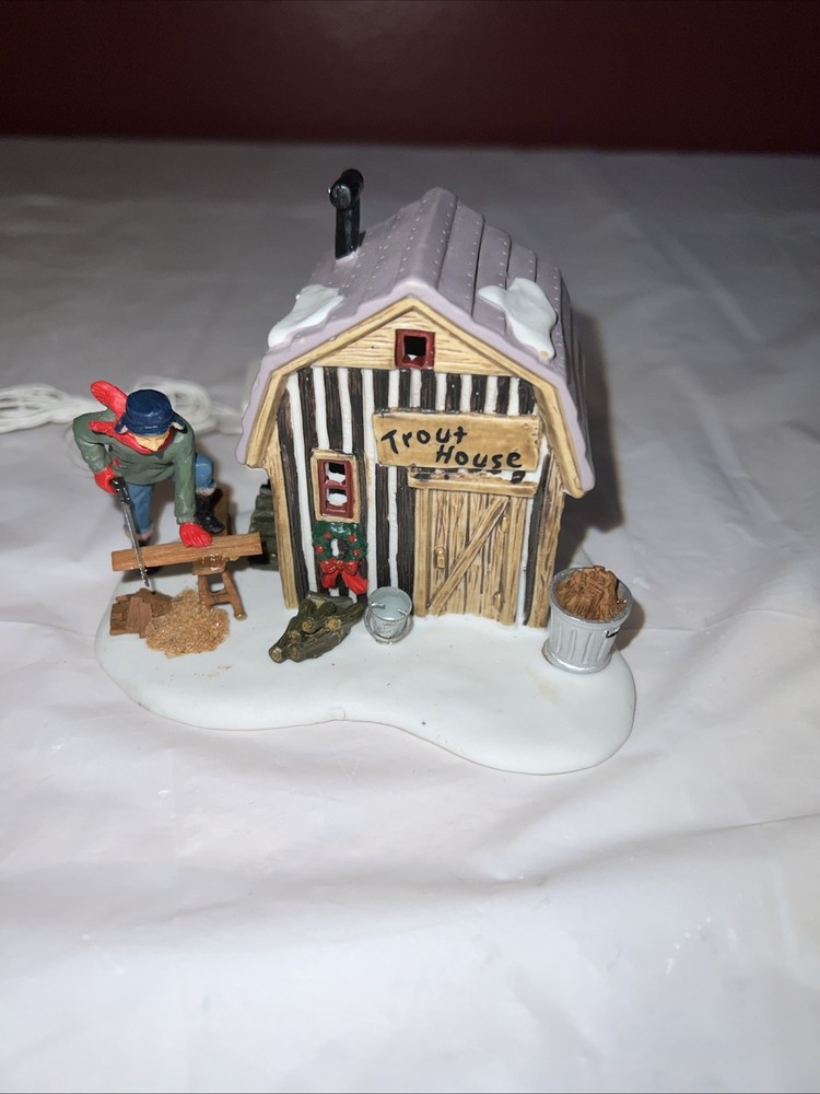This vintage Lemax Village Collection house from 2001 is sure to add a charming touch to any Christmas display. The Trout House features intricate details and multicolor accents that showcase the Victorian style. Made from high-quality porcelain, this original piece comes in its original box for safekeeping. Perfect for collectors or as a holiday decoration, this house is part of the Lemax Village Collection and is designed to be placed in any room. The Trout House is a great addition to any Christmas occasion and is sure to bring joy to all who see it. The trash can and small pile of wood needs to be glued back on. As you can see via pictures it does work new batteries just put in so it could be tested.