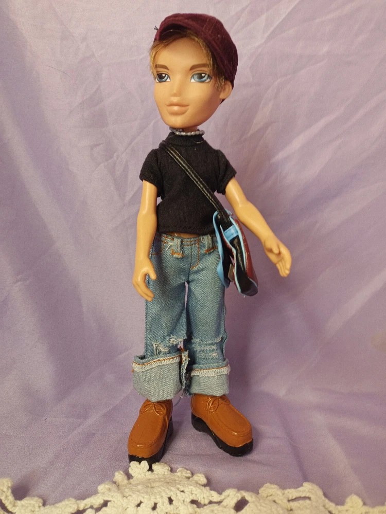 Embrace nostalgia with the 2002 Bratz Boyz Cameron Boy Doll from MGA Entertainment, a must-have for collectors and fans alike. Sporting his signature blonde hair, Cameron comes as a genuine piece from the early 2000s, capturing the iconic era of the Bratz franchise. At 10 inches tall, this boy doll showcases Cameron’s distinct style, complete with a light complexion and piercing blue eyes that reflect his charming persona. The doll, a representation of the early 2000s fashion trends, does not come with packaging, emphasizing its authentic vintage value. As an original MGA Entertainment creation, it embodies the memorable design and character of Cameron, making it a cherished single unit for those who appreciate the timeless allure of Bratz Boyz.