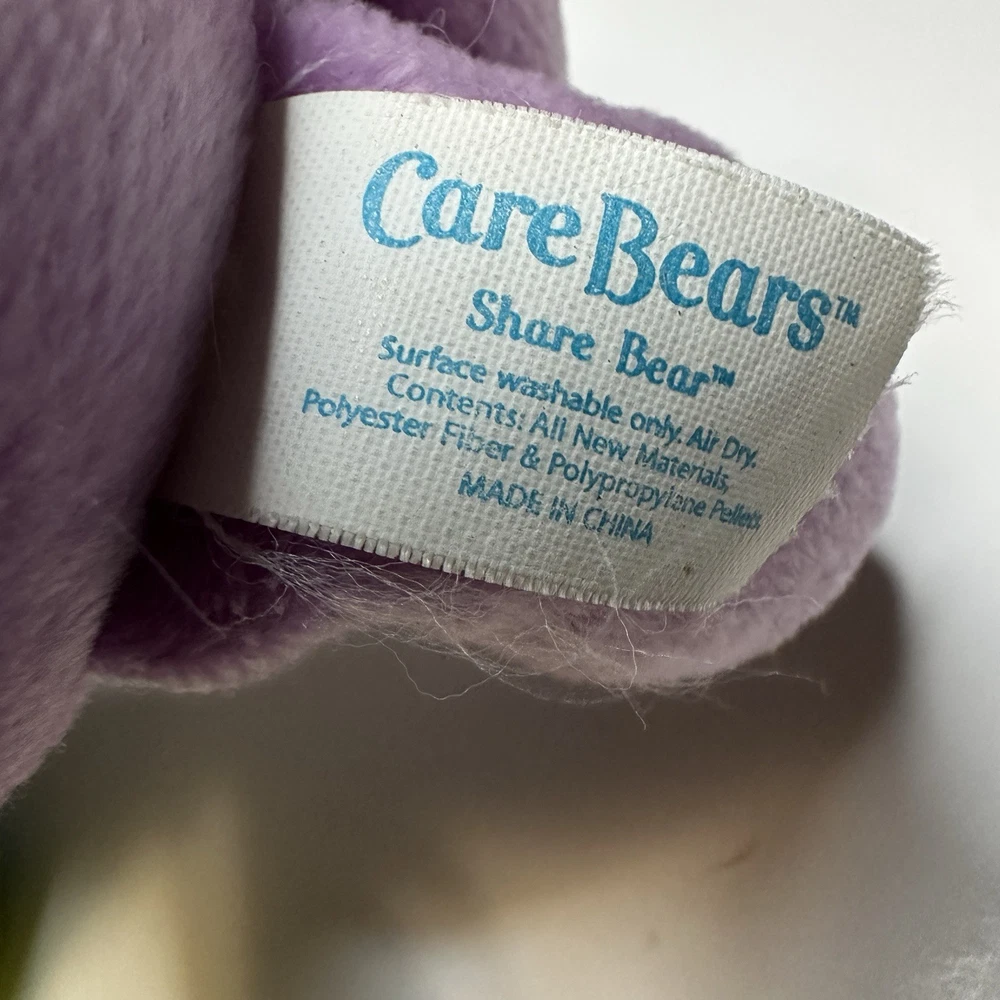 Unit of Sale: Bear Lot Theme: Animals Eye Color: Purple Type: Stuffed Animal gtin13: Does not apply UPC: Does not apply Personalize: No Signed: No Items Included: Bear Character: Share Bear, Do Your Best Bear Age: Contemporary 1990-Now Vintage: Yes Item Length: 8 in Country/Region of Manufacture: China Size: 8 in Features: Collector's Edition, Collector Bear, Retired Bear Color: Purple Animal Species: Bear Modified Item: No Animal: Bear Franchise: Care Bears Material: Plush Seller Notes: “Pre-Owned” Occasion: All Occasion Item Height: 8 in Handmade: No Time Period Manufactured: 2000-2009 Collection: Care Bear Antique: No Age Level: 3-4 Years Original/Licensed Reproduction: Original Year Manufactured: 2002 Number of Items: 2 Brand: Care Bears