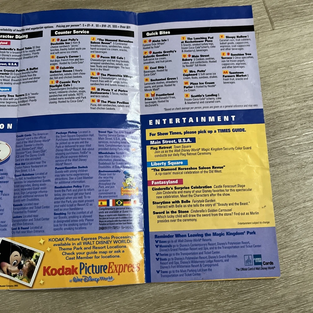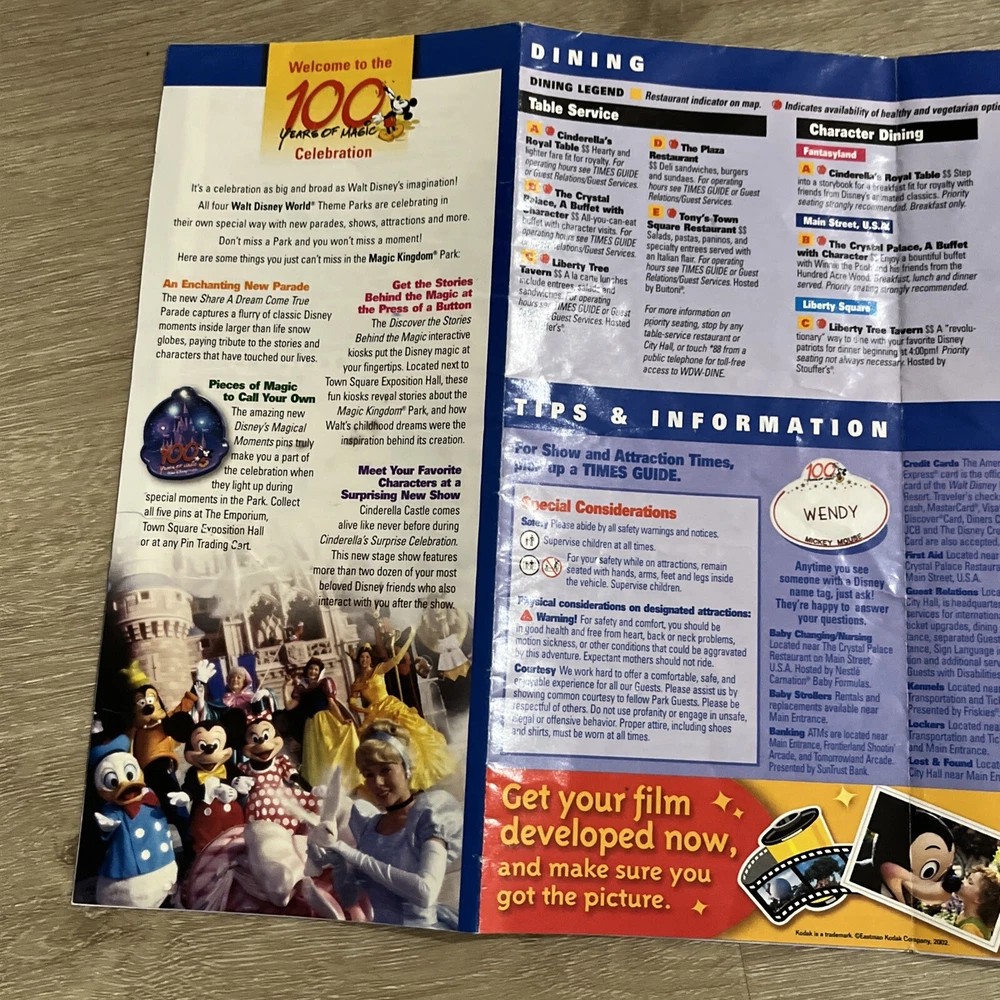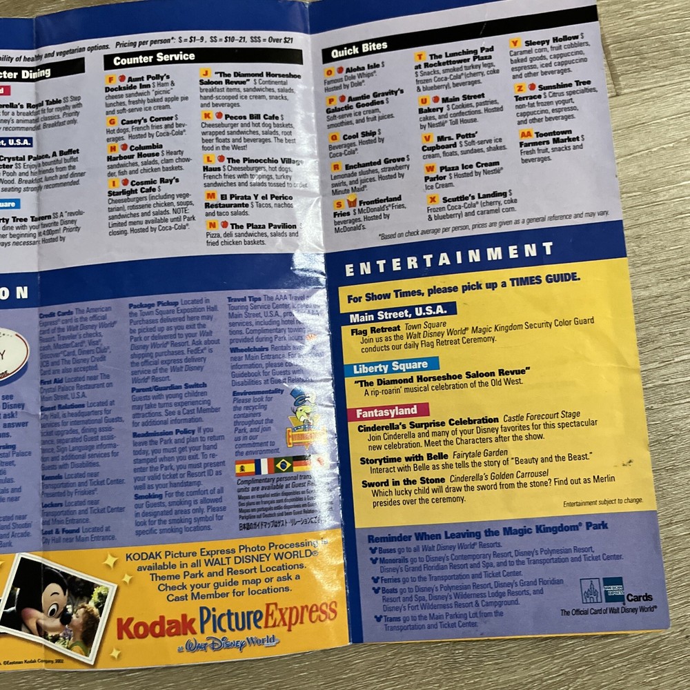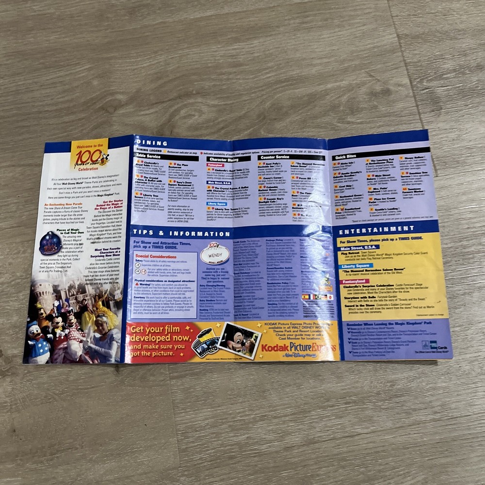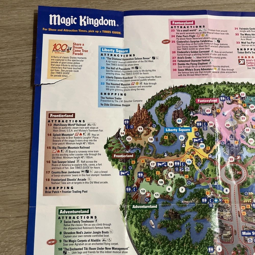2002 Magic Kingdom map. One tear, see photo. Will ship First class without tracking. Buy multiple items and I’ll combine shipping.