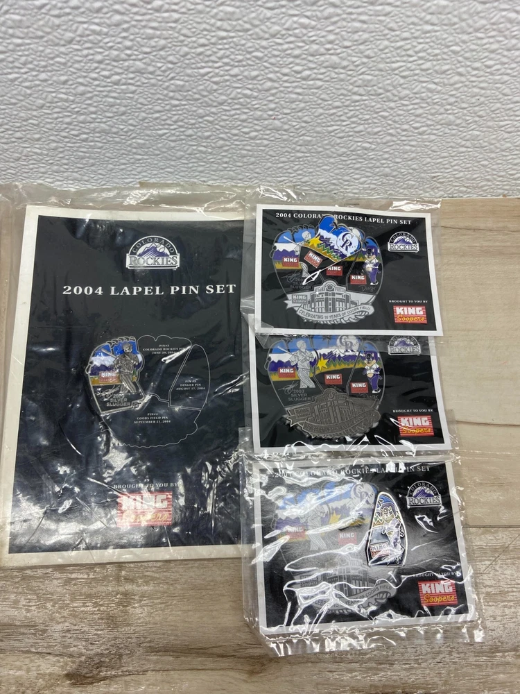 Vintage Colorado Rockies Collectors 2004 Lapel Pin Set Of 4.New-sealed no defects WE OFFER COMBINED SHIPPING AND MULTI-ITEM PURCHASE DISCOUNTS.IF YOU HAVE ANY QUESTIONS, PLEASE LET US KNOW