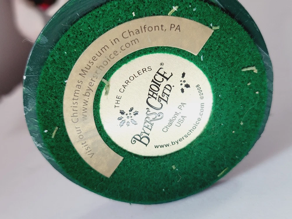 Material:Mixed MaterialsTime Period Manufactured:2000-2009Occasion:ChristmasPersonalize:NoType:CarolerYear Manufactured:2008Color:MulticolorBrand:Byers ChoiceHandmade:YesCountry/Region of Manufacture:United States
