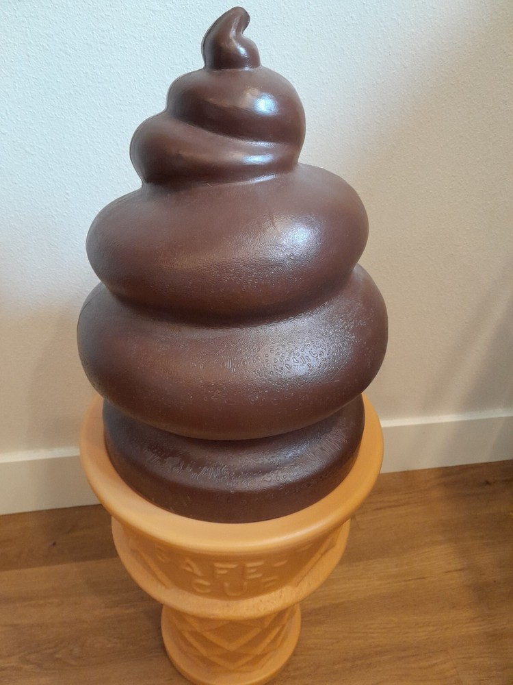 This vintage SAFE-T CUP bank is a delightful addition to any collection. Measuring 26 inches tall, it features a chocolate swirl design that is sure to bring a smile to your face. Made from durable plastic, this bank was manufactured in the United States and is an original piece. Perfect for collectors of all ages, this bank is a unique and fun way to save your spare change. Whether you display it on a shelf or use it to stash your coins, this piece is sure to make a statement. Add this charming vintage bank to your collection today! No cracks.