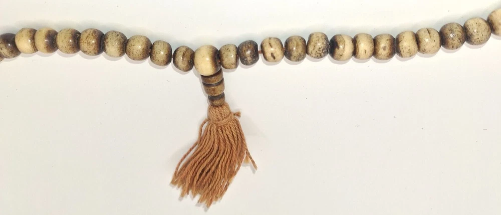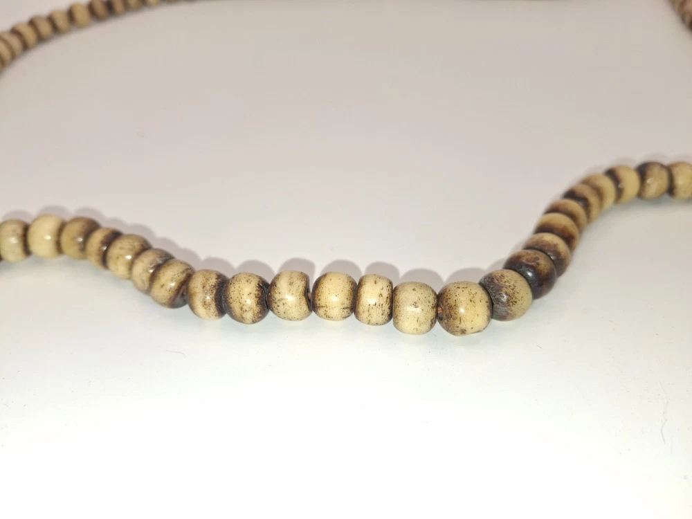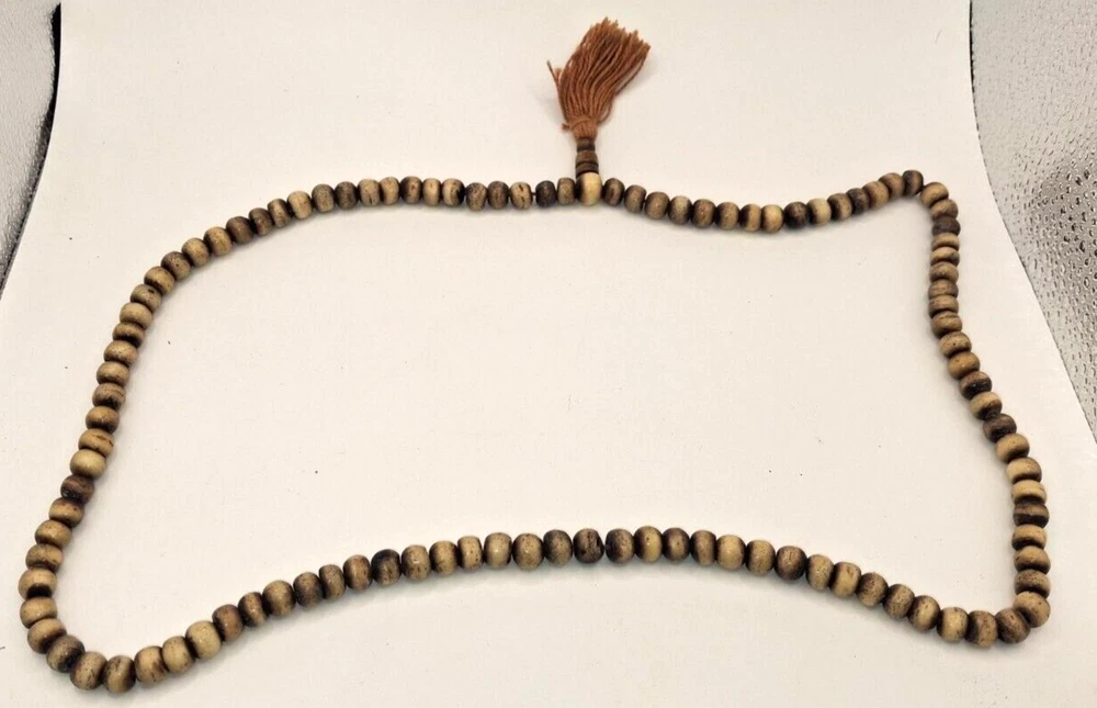 Vintage 30" Tibetan Mala Tea Stain Bone Bead Prayer Meditation Necklace