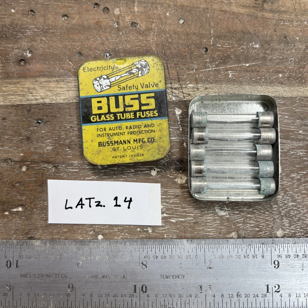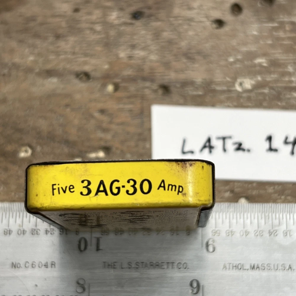 Vintage 3AG-30 Bussman MFG CO BUSS Glass Tube Fuses Metal Container Lot — LATz.14 FREE SHIPPING Great old full box of fuses Original box - ok shape Fuses are all there, little tarnished with age