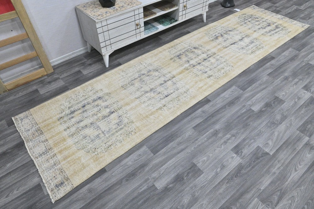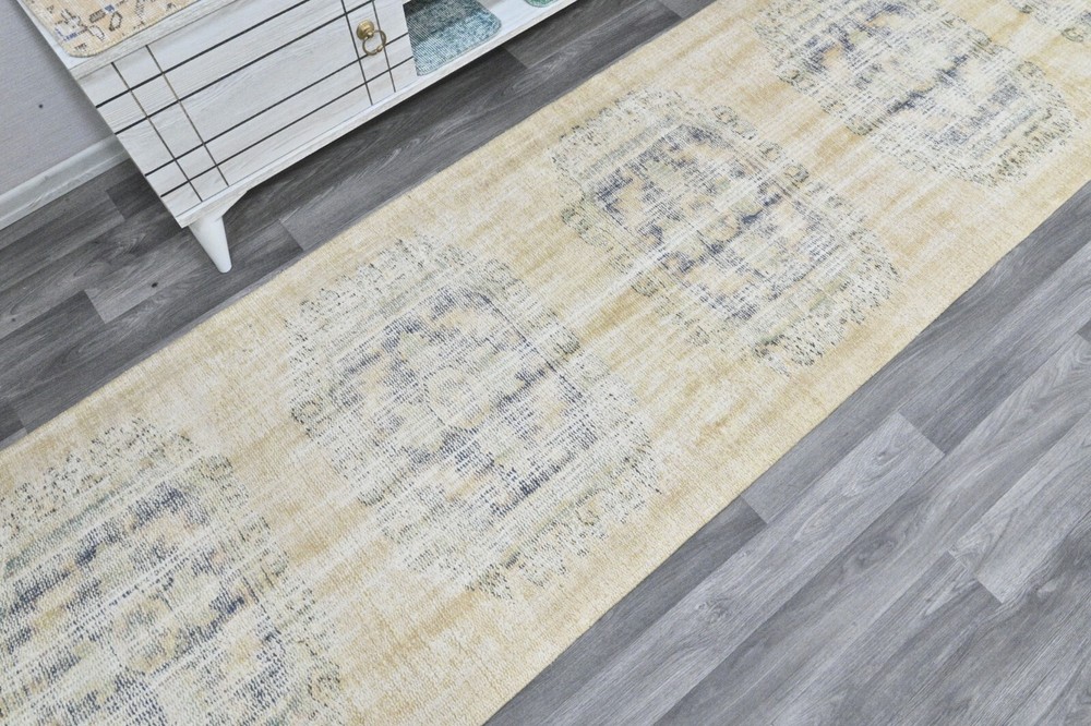 This Oushak Turkish Vintage Area Rug is a one-of-a-kind piece hand-knotted and handwoven by skilled artisans using pure wool and natural tones to create a stylish Oriental design in Beige and Blue. It is in excellent condition, having been professionally cleaned, and is ready for delivery. DETAILS: This rug is part of our collection of vintage hand-knotted rugs, most of which were woven in the 1950s, 1960s, and 1970s. ➛Size: 2'78 x 10'8 feet (85 x 331 cm, 33 x 130 inches) - SKU:9087 ➛Materials: Hand-knotted with natural wool and cotton ➛Availability: Unique item, only one in stock ➛Condition: Professionally cared for, in excellent condition ➛Shipping: Free international shipping with expedited air delivery ➛Lead time: Ready to ship in 1 day ➛Bonus: Mini gift rugs included in the package Please note that while we do our best to accurately represent the colors of our vintage rugs, there may be slight variations due to differences in screen color, contrast, and brightness. We offer a 14-day return policy for a full refund. Please contact us for wholesale orders. If you have any questions, please feel free to contact us via eBay chat