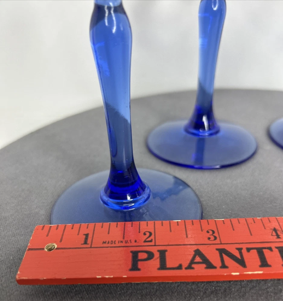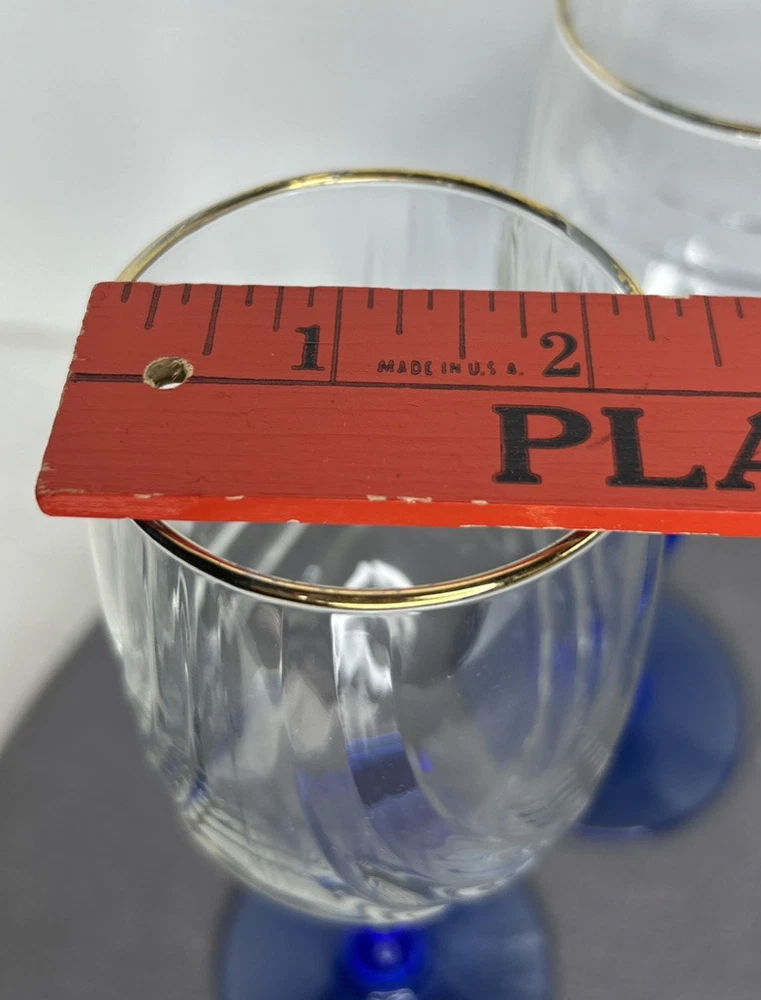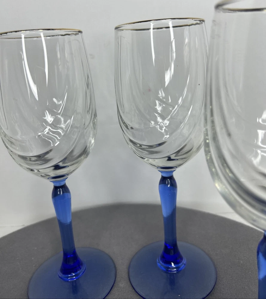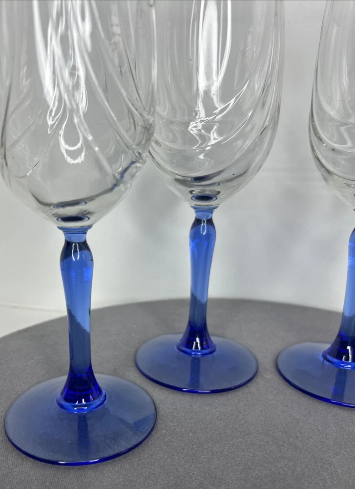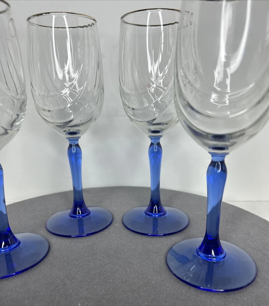 Vintage Lenox Crystal Wine Glass Set includes four round glasses with cobalt blue stems, with a dual swag draped design and gold rims. Hand-blown in 1980's, these 9 oz glasses feature an Art Deco style. The elegant design is perfect for all occasions. A luxurious addition to any glassware collection, these wine glasses were manufactured in France and together they weigh about 4 lbs. Vintage 4 Lenox Crystal Blue Stem Wine Glasses Dual Swag & Gold Rim - 1980's, these are in excellent vintage pre-owned condition, with NO chips, cracks or repairs. Please review all pictures for proper assessment of their excellent vintage pre-owned condition.
